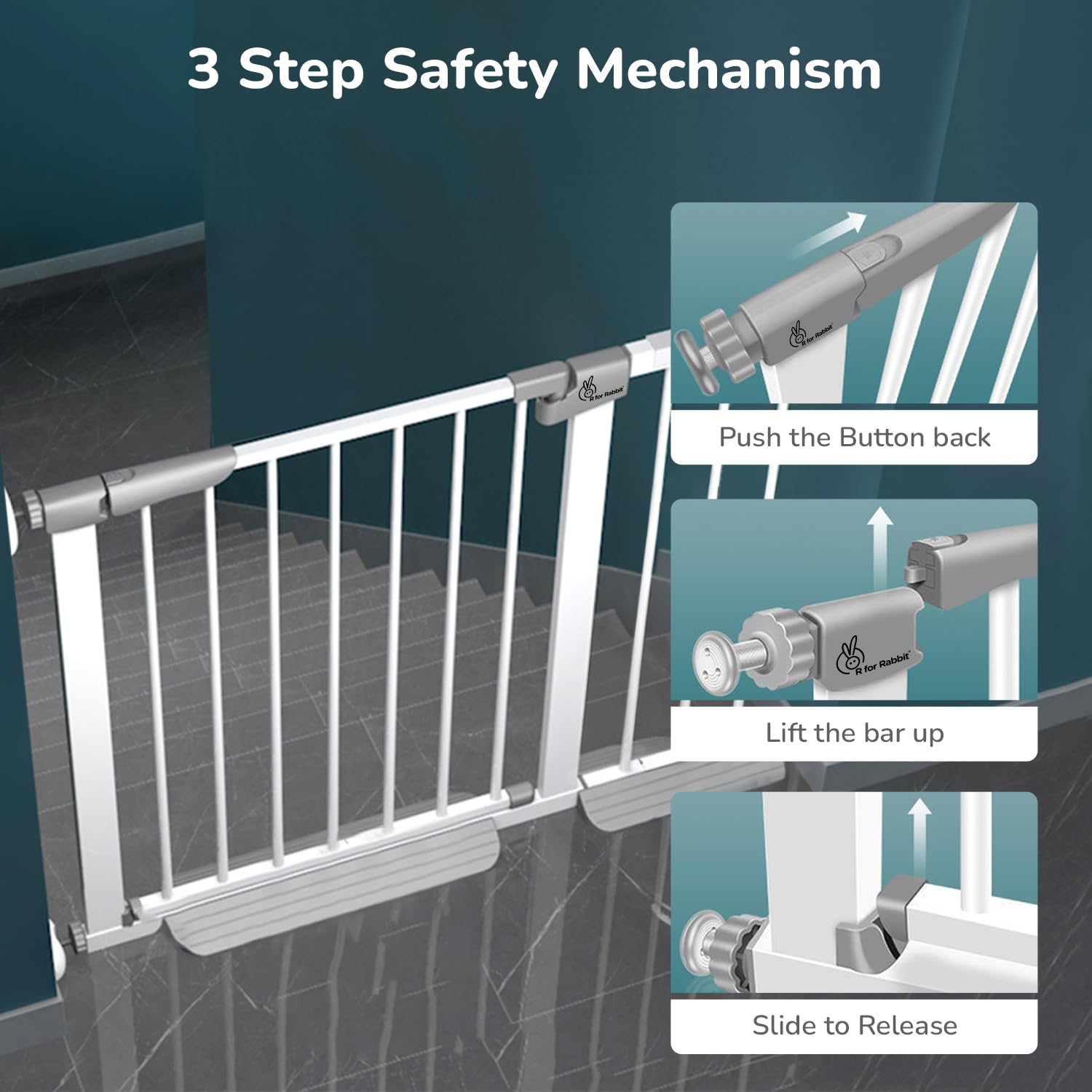 - ✔ ONE HAND OPERATION: (1) The baby safety gate is designed so that parents can open using just one hand, but not easy for the kids because of the Double-lock mechanism; (2) It swings comfortably in both directions allowing to work it for both sides.