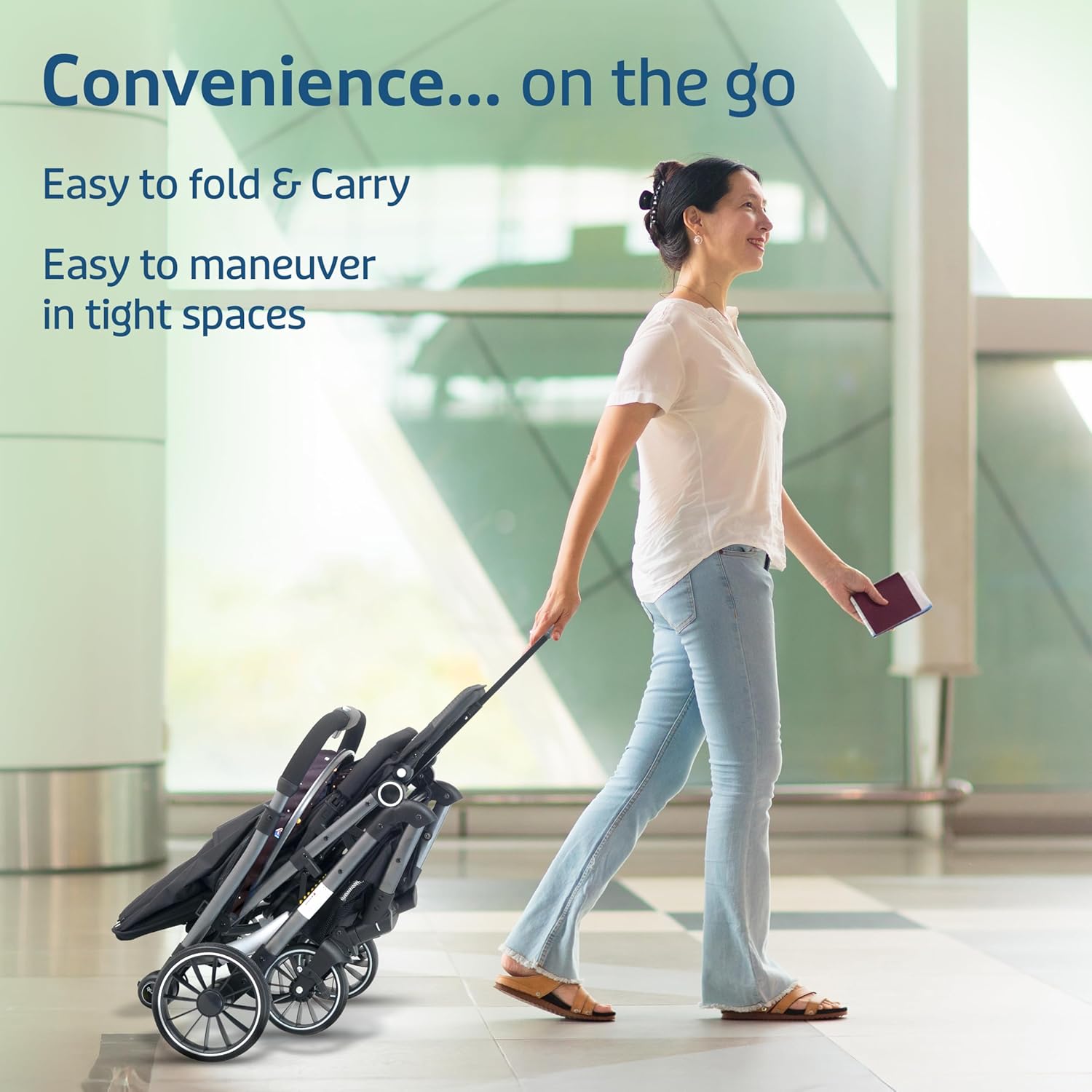 - The stroller comes with one touch one hand fold … makes it ideal for travelling parents