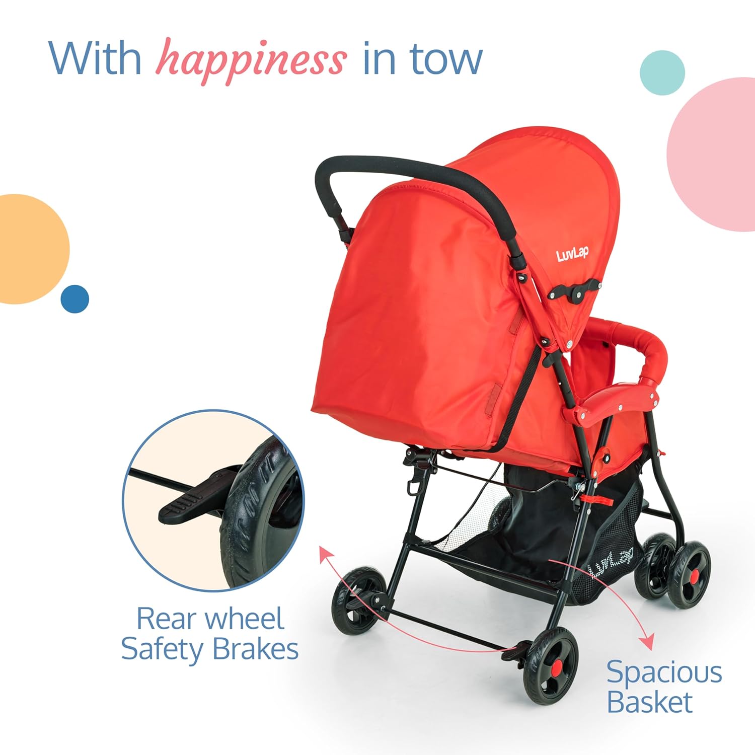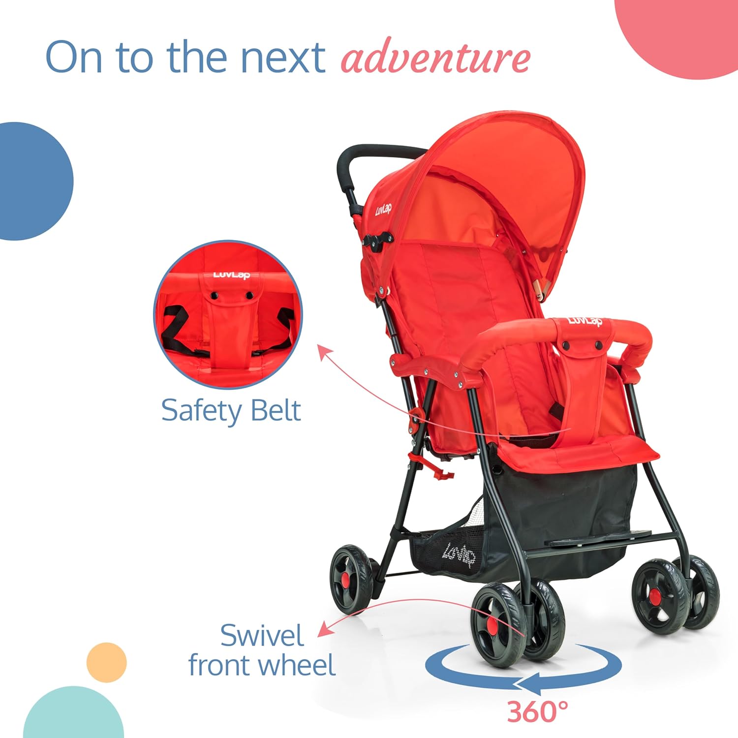 LuvLap Apollo Stroller with Multi-Position Recline, Lightweight, 3-Point Safety Harness, Rear Wheel Brakes, Swivel Front Wheels, Storage Basket, Weight Capacity 15Kgs
