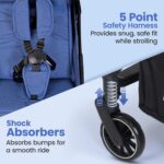 - 5 point safety harness for child safety, Extended Foldable Canopy for maximum comfort