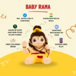 Meet Baby Rama : Let your child discover the values of truth, courage, and righteousness with the adorable Baby Rama plush toy by Panda’s Box. This soft mantra chanting toy brings the beloved prince of Ayodhya to life — inspiring children to learn devotion, discipline, and compassion through joyful play.