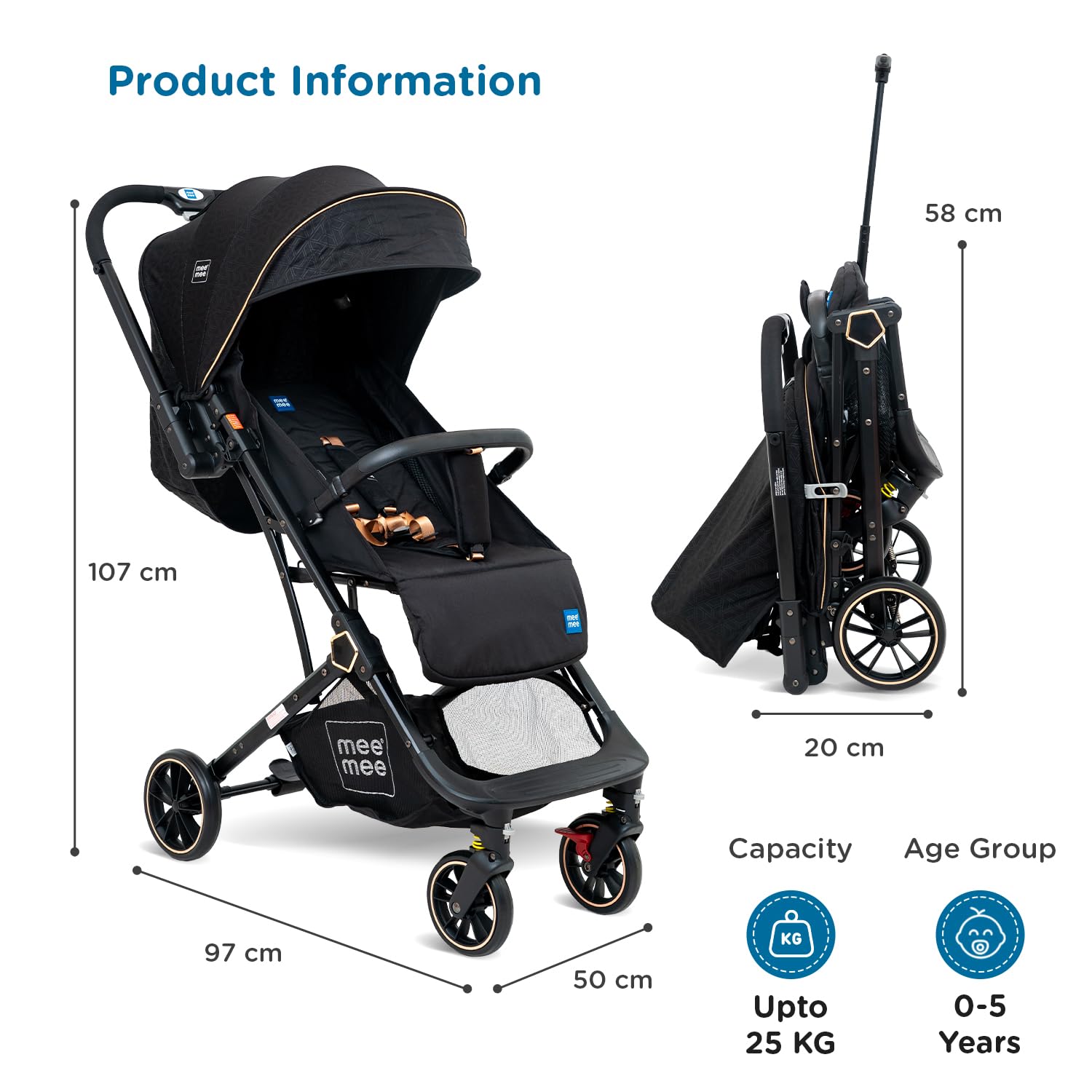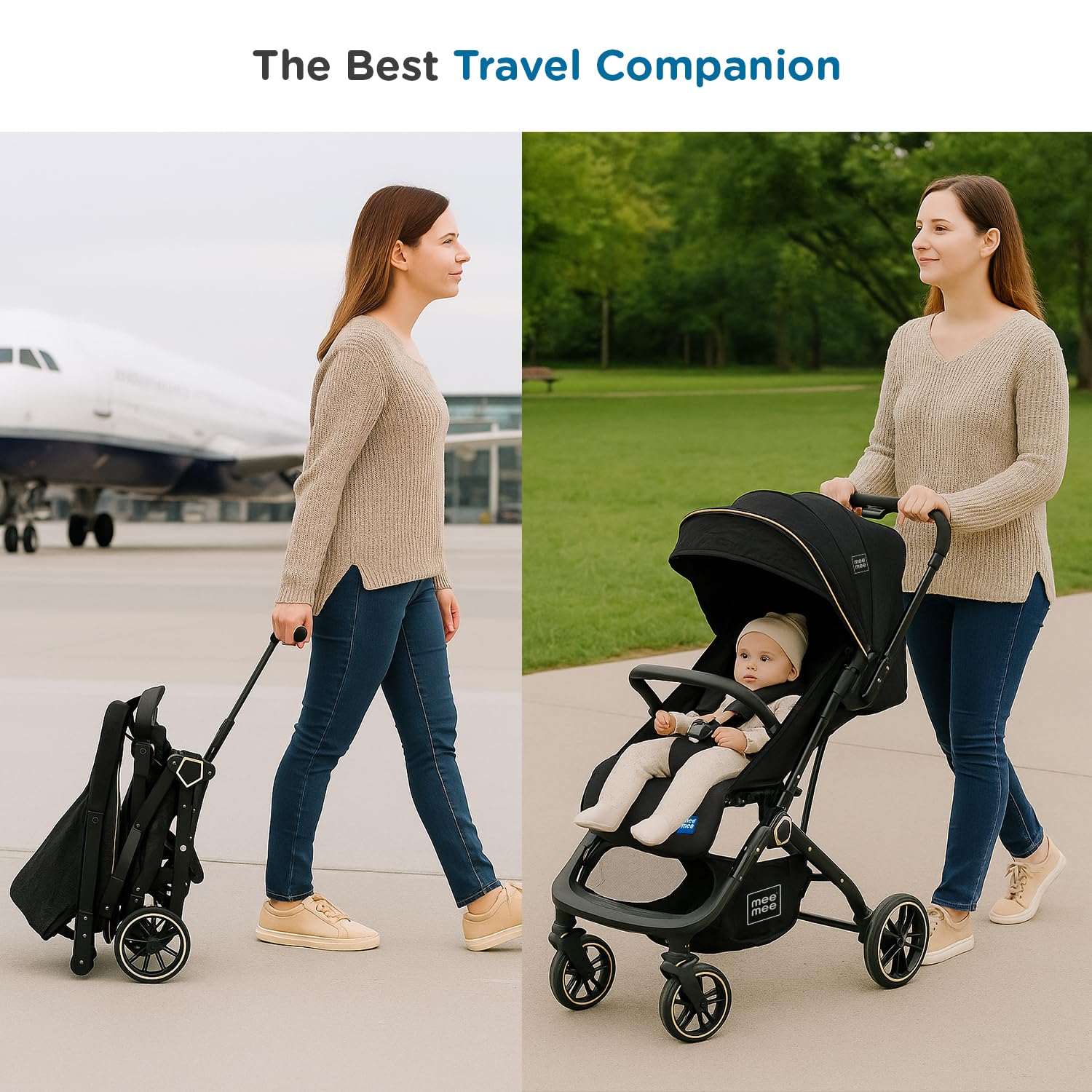 Mee Mee Air Luxe Baby Stroller for 0–3 Years | Lightweight Foldable Pram with Sun Protection Canopy, 5-Point Safety Harness, Adjustable Seat, Shock Absorber Wheels & Storage Basket