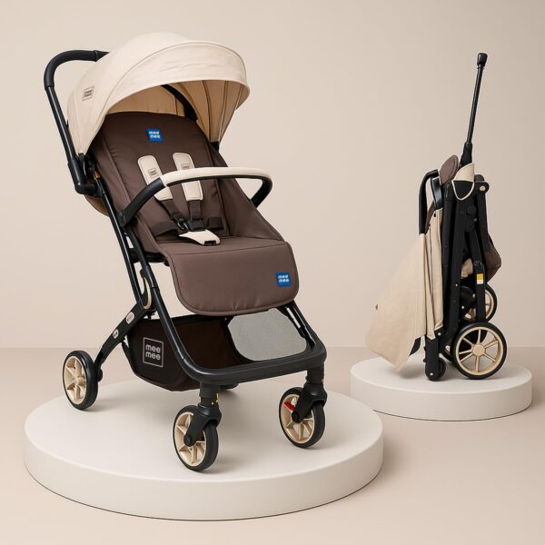 Mee Mee Lightweight Foldable Baby Stroller for 0–5Years | One-Touch Fold, Reversible Handle, Adjustable Footrest & 5-Point Safety Harness | Compact Travel-Friendly Stroller for Babies and Toddlers