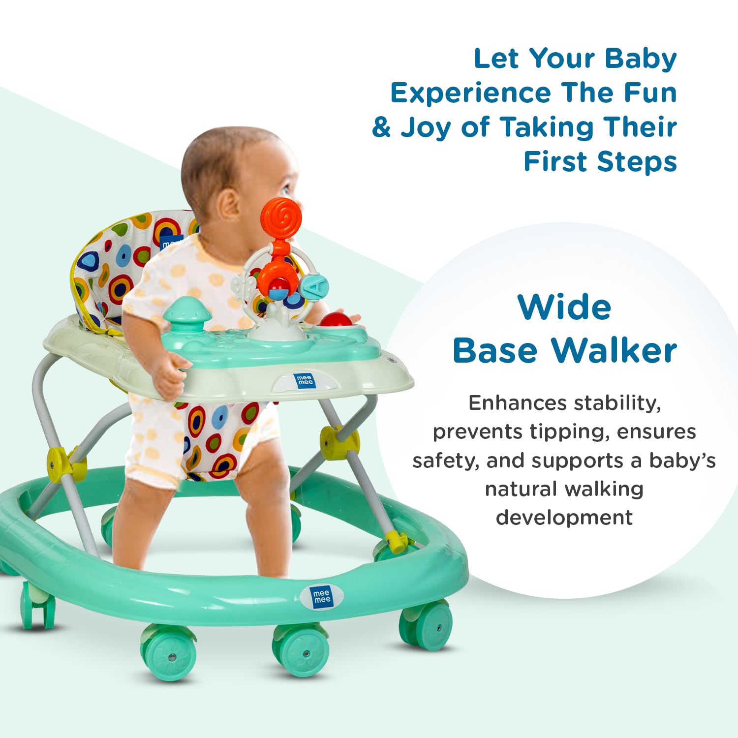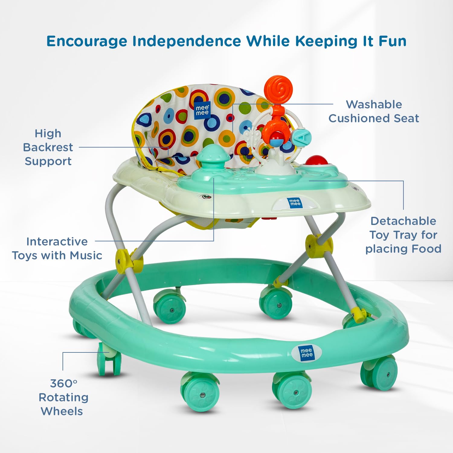Mee Mee Premium Baby Walker 7 Level Adjustable Height, Foot Mat & Musical Activity Tray High Backrest Cushioned Support - 360° Rotational - 6 Months to 2 Years