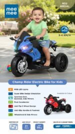 Give your little one the thrill of riding with the Mee Mee Champ Rider Electric Bike for Kids. Designed with a sporty superbike look and packed with child-friendly safety features, this electric ride-on bike offers a fun and exciting outdoor experience for young riders. With a stable 3-wheel anti-tip design and easy foot accelerator, children can enjoy smooth and safe rides while building confidence and coordination.