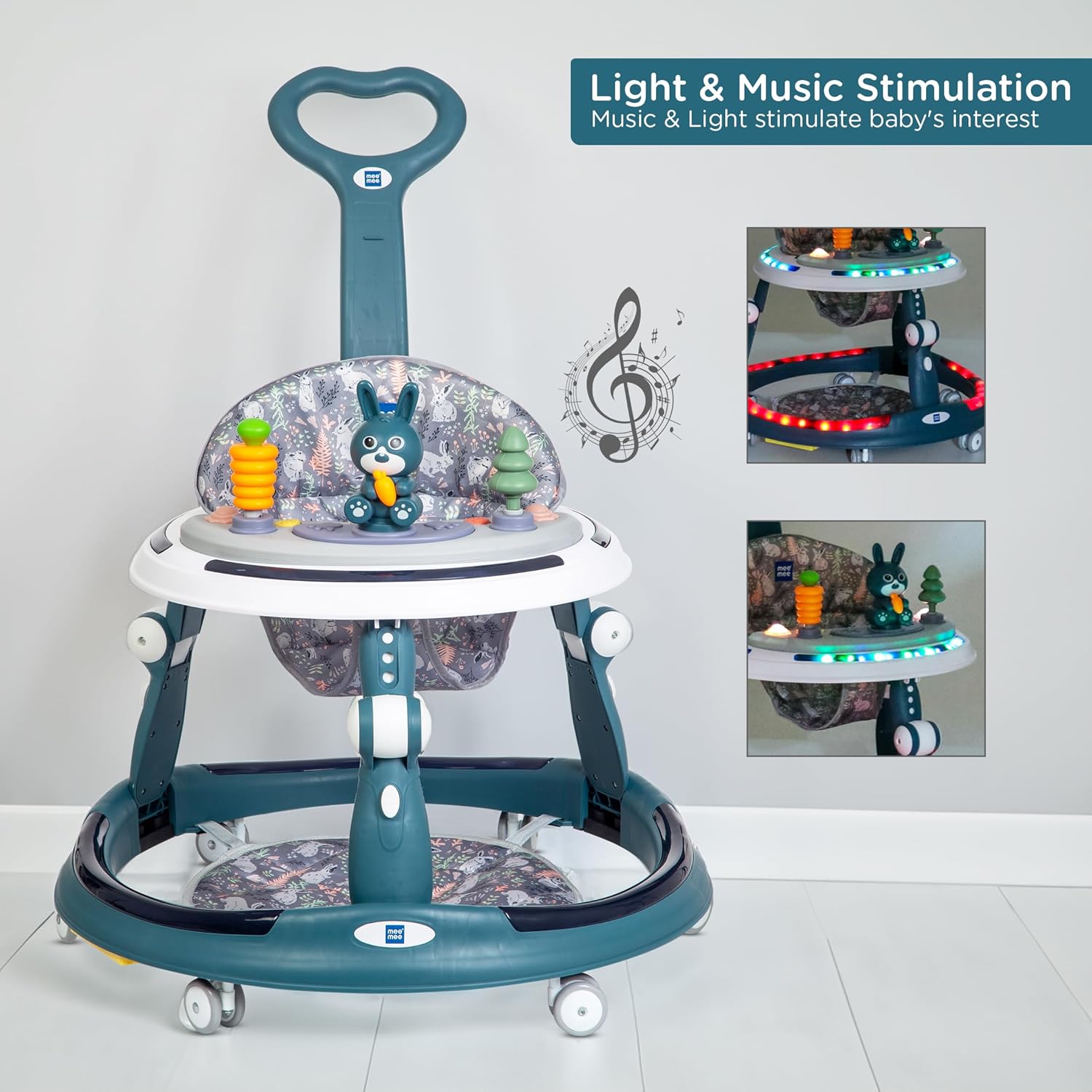 Mee Mee 2-in-1 Baby Walker & Rocker with Parental Push Handle, Anti Fall, Anti Skid Mechanism, 3 Level Height Adjustable with Light, Musical Toys, 360° Rotating Wheels 6-18 Months, Upto 15 Kg
