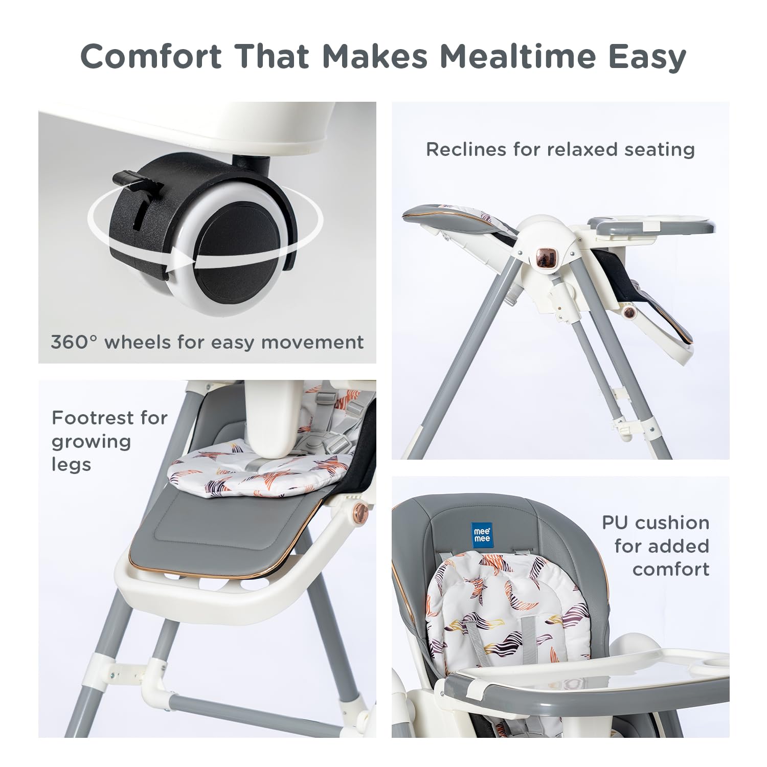 Mee Mee Royal Rise 3-in-1 Baby High Chair with Swing & Reclining Backrest | Adjustable Height Feeding Booster Seat | 5-Point Safety Harness | Foldable & Multipurpose Chair for Infants & Toddlers