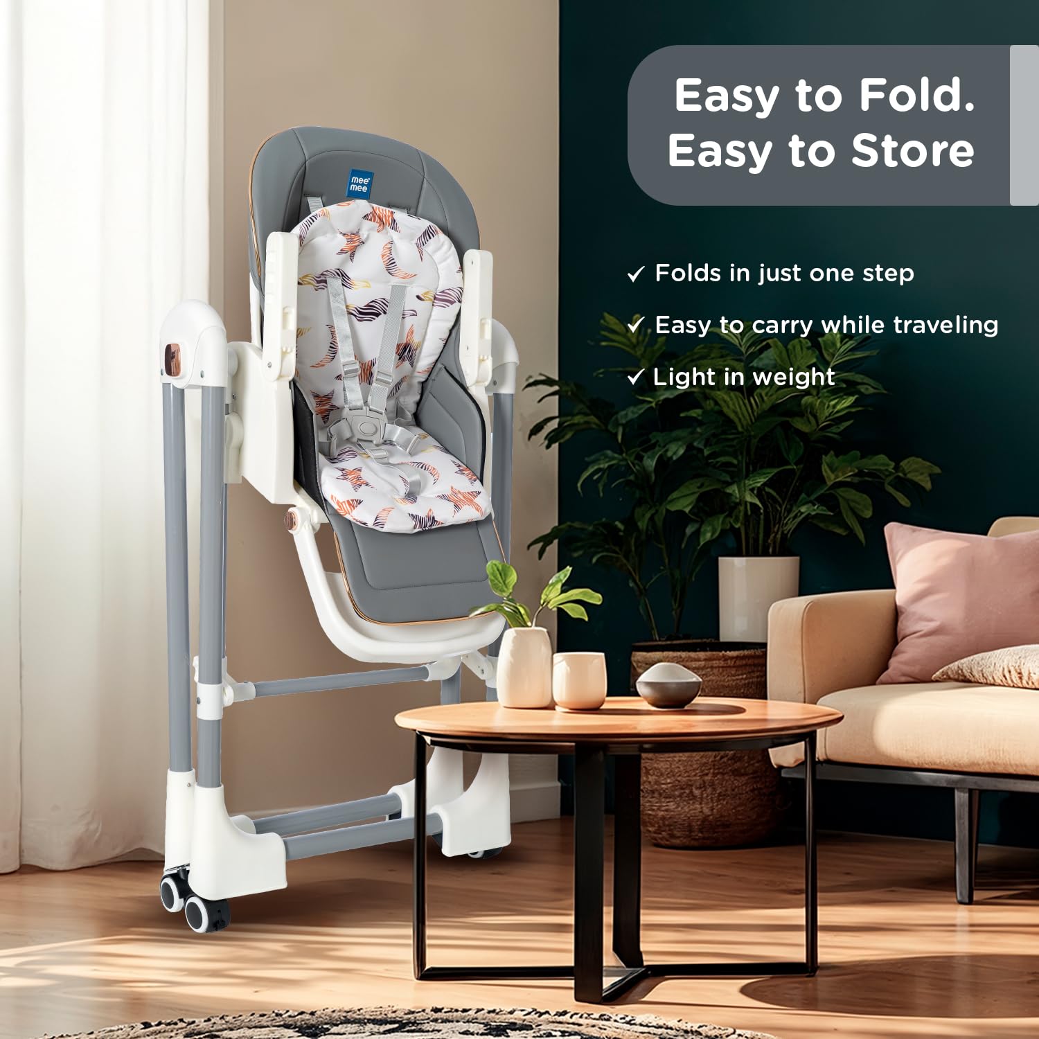 Mee Mee Little Scholar Baby High Chair for Baby Feeding, 5-in-1 Convertible Kids Feeding Chair Compact Fold with High Adjustable, Play Chair Booster, Travel Friendly, 0.5 to 3 Years Kids