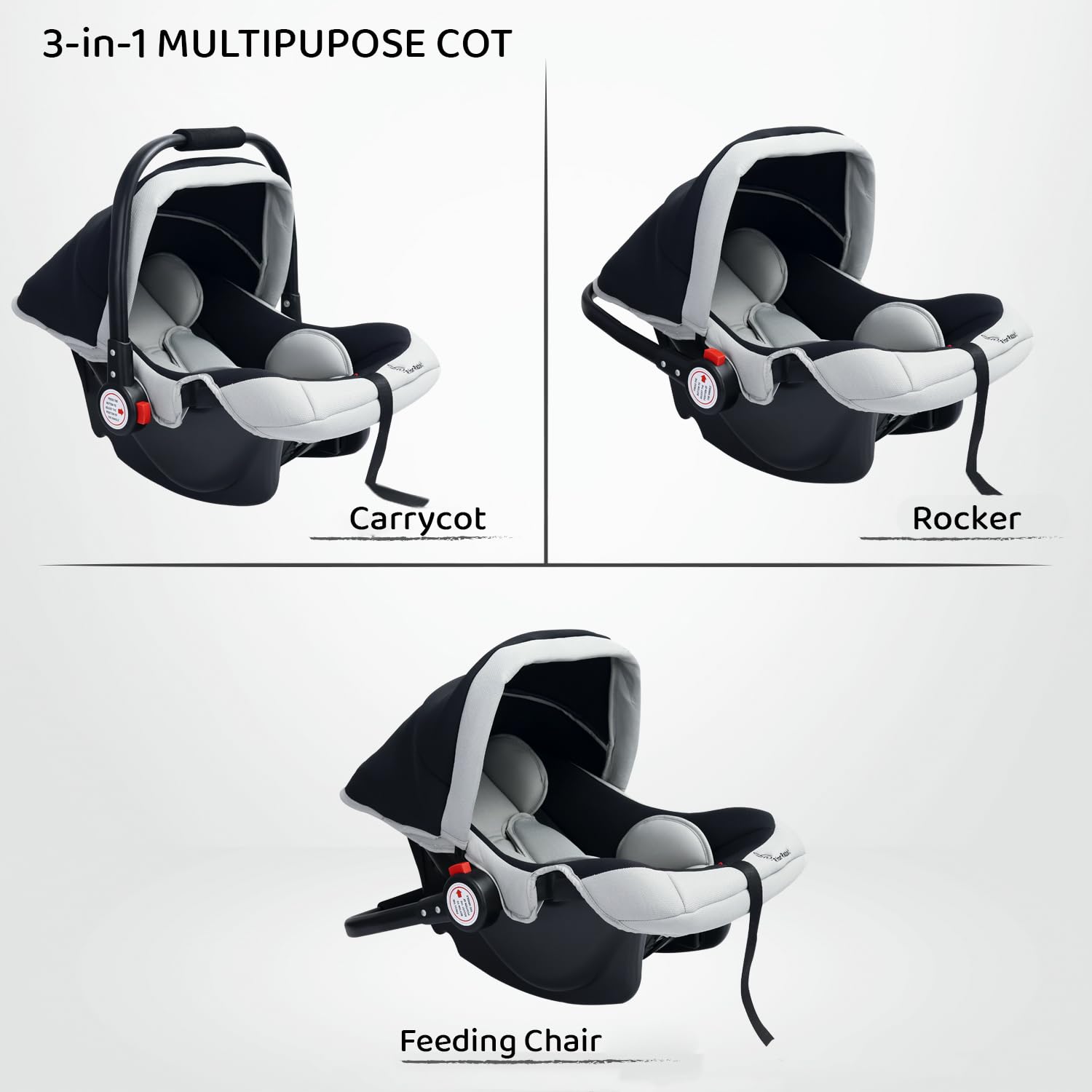 R for Rabbit Baby Cozy Carry Cot with 3 in 1 Multi-Purpose Baby Rocker & seat| 3 Point Safety Harness for New Born Babies of 0 to 15 Months