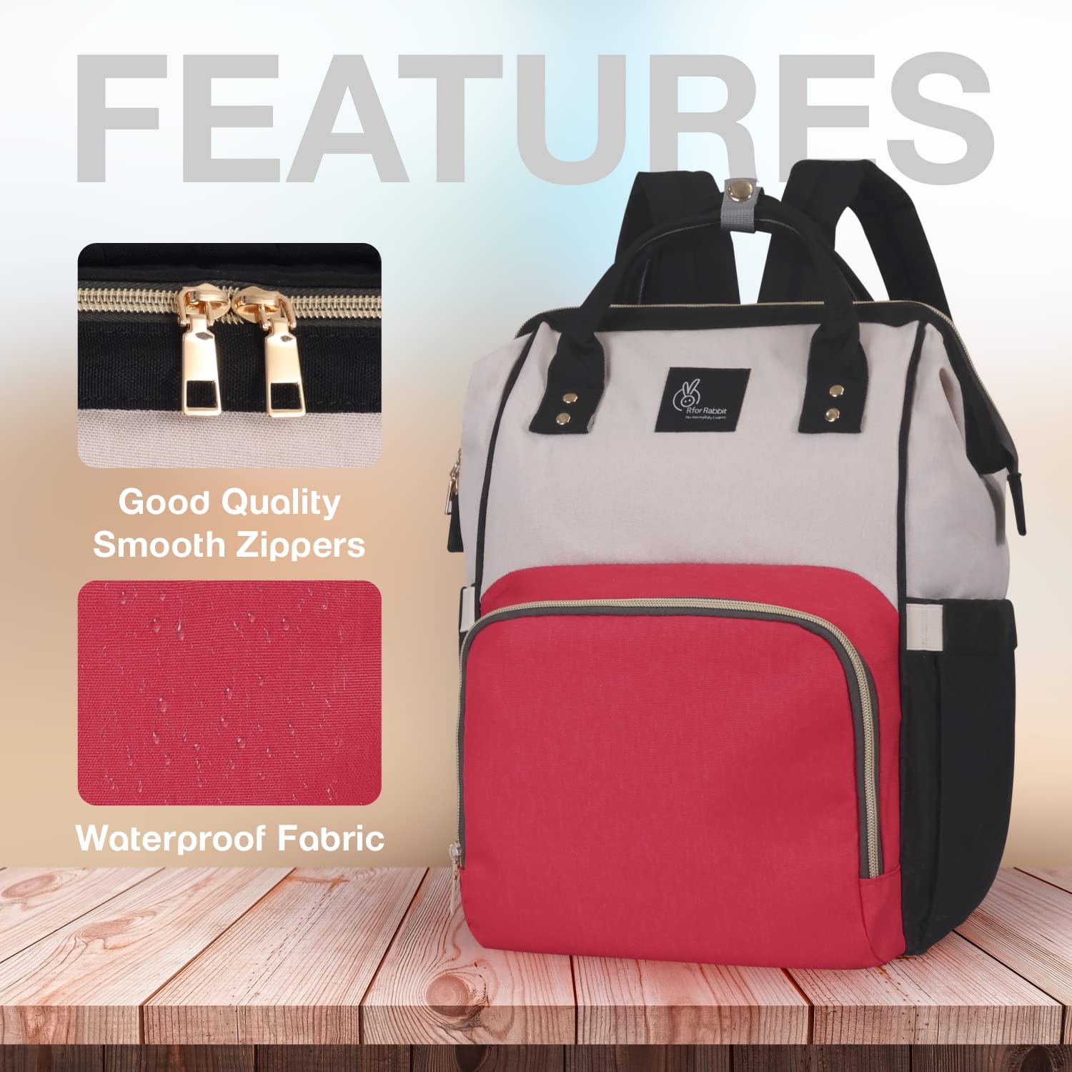 R for Rabbit Caramello Regal Baby Diaper Bag for Mother, Waterproof Kids Diaper Backpack for Mothers, Multifunctional Maternity Bag for Travel, Nursing Backpack for Moms