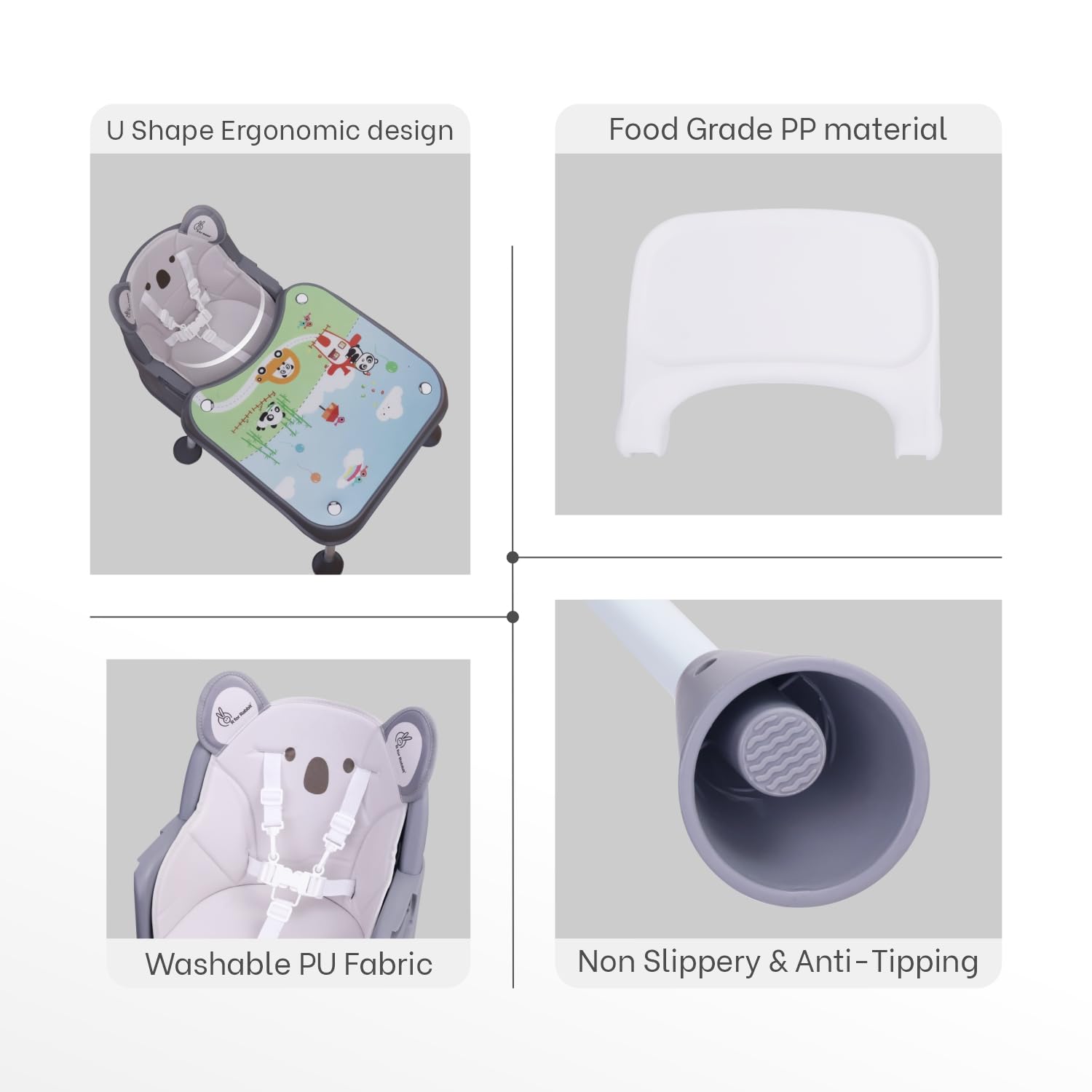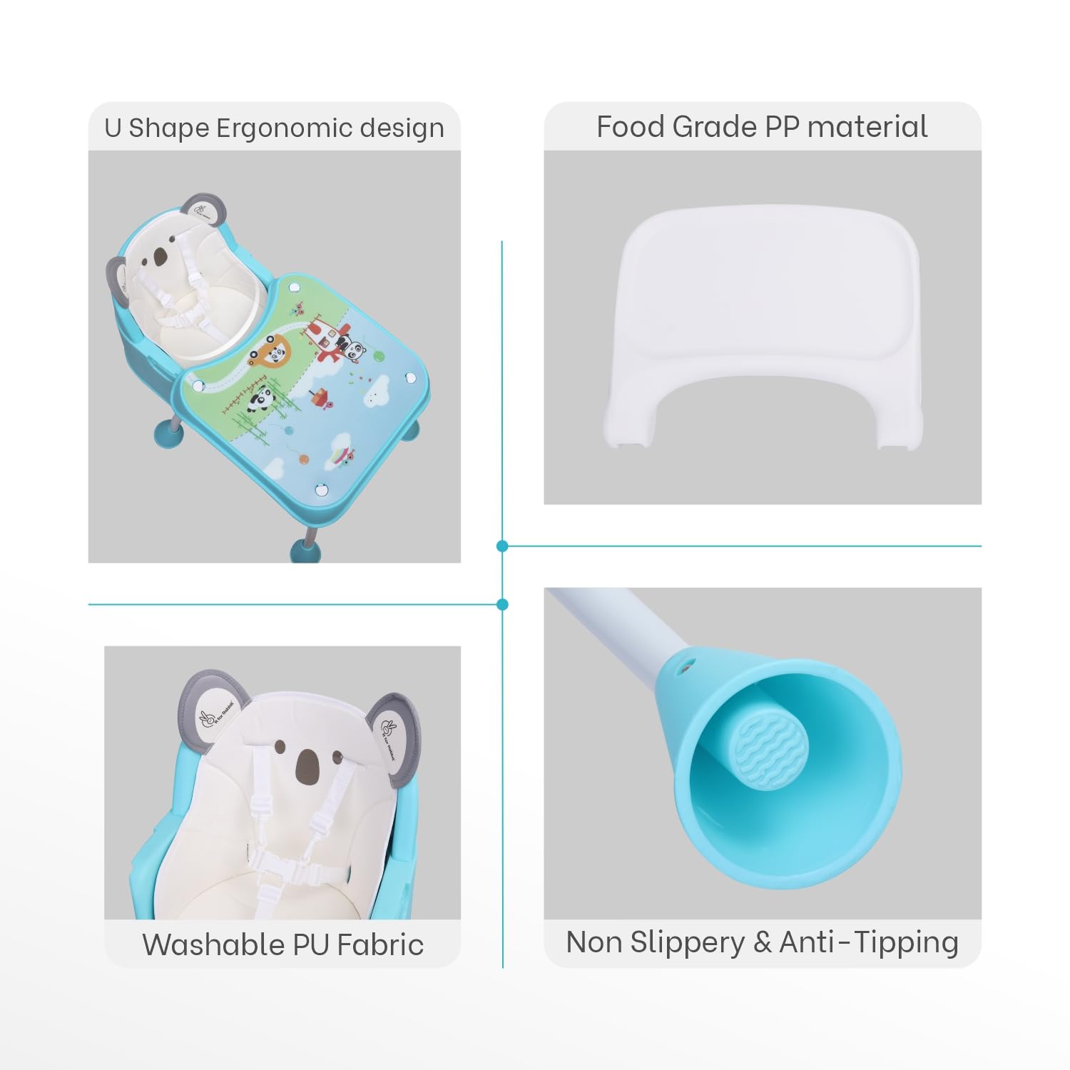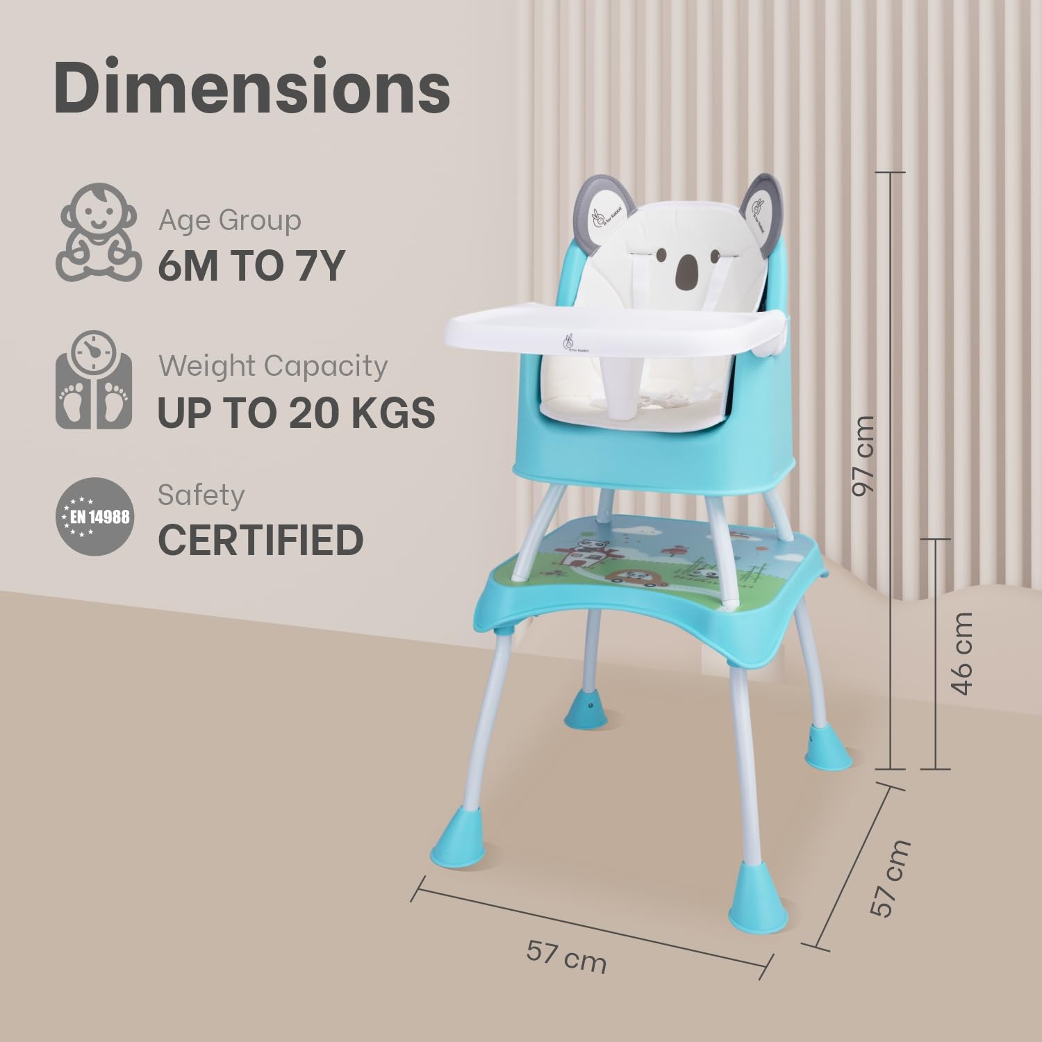 Maximum Weight Recommendation 20 Kilograms Material Fabric: PU Leather Fabric, Framing: Iron Meal, Tray: Plastic Material composition PU Leather Care Instructions Hand Washable Additional product features Convertible High Chair, Feeding Chair, Study Table Chair Style Modern Batteries required No Is portable Yes Product Dimensions 23 x 57 x 96 cm; 6.04 kg Item model number HCCBGTB4 Manufacturer recommended age 6 months – 7 years Manufacturer R For Rabbit Country of Origin India Item Weight 6 kg 40 g
