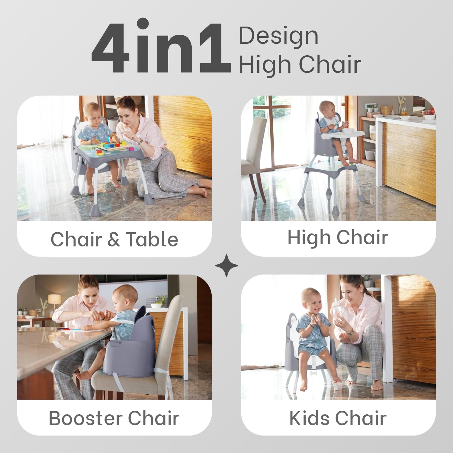 Mee Mee Cherub Baby High Chair for Baby Feeding, 5-in-1 Convertible Kids Feeding Chair Compact Fold, High Adjustable, Play Chair Booster Seat Dual Meal Trays, 0.5 to 3 Years Kids