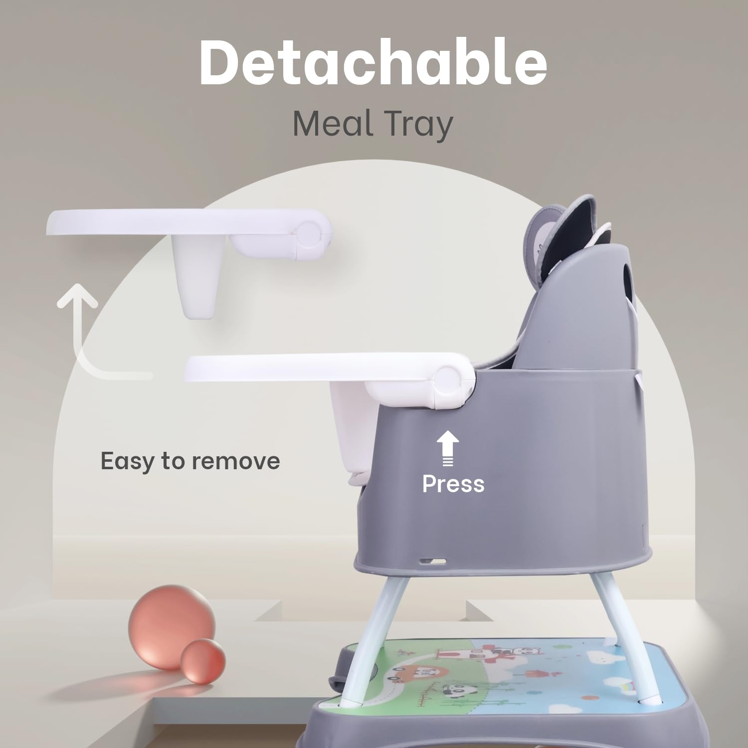 - Convertible to Booster Seat – Cherry Berry’s Grand Innovative Design allows you to convert High Chair to Booster Seat.
