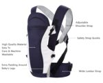 - Wide shoulder, lumbar strap & adequate padding: Wide shoulder strap helps proper support and evens out weight on shoulders. Wide lumbar strap provides apt support to your waist and helps to carry your baby easily