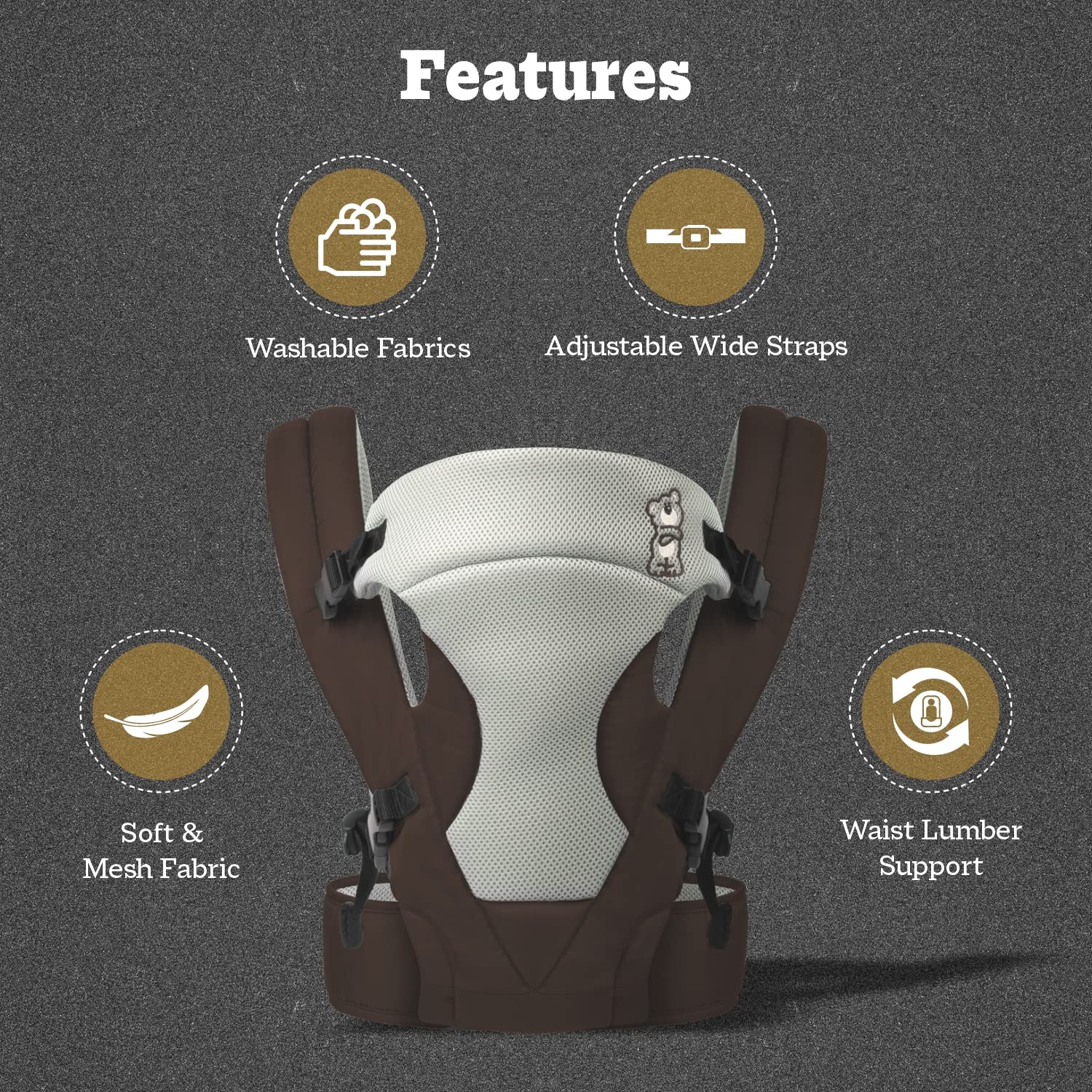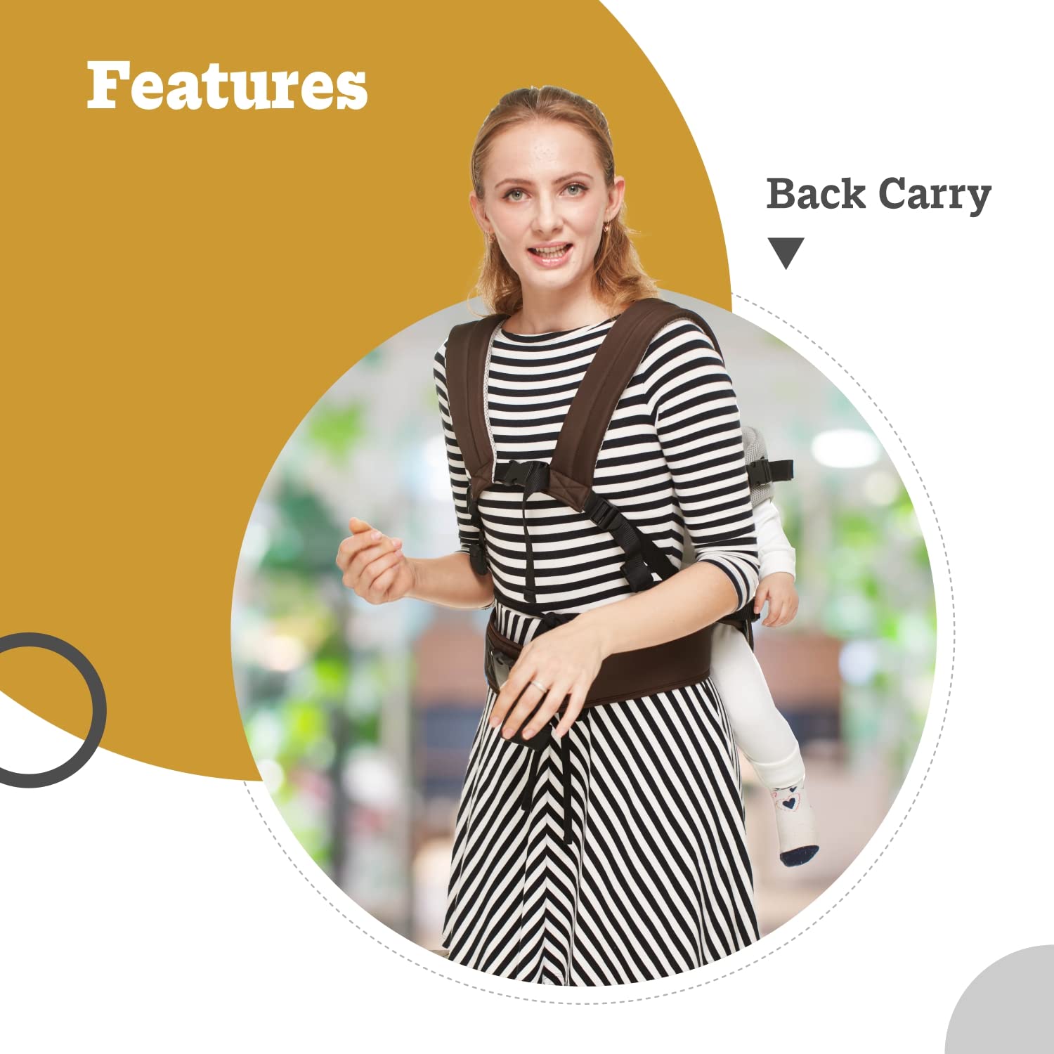 - Wide shoulder & Lumbar strap: Wide shoulder strap helps proper support and evens out weight on shoulders. Wide lumbar strap provides apt support to your waist and helps to carry your baby easily