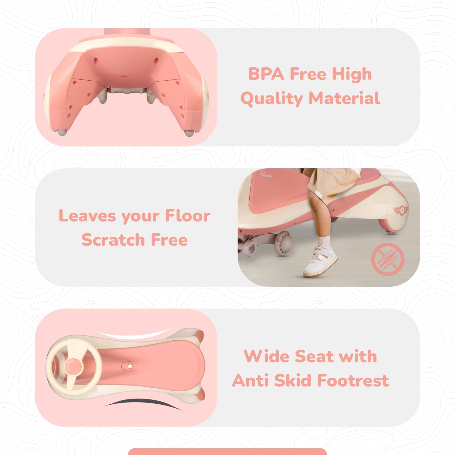 R for Rabbit Iya Iya Zippy Swing Car for Kids – Magic Push Ride On Wiggle Car with Smooth ABEC7 Bearings & Scratch-Free PVC Wheels, Birthday Gift Toy for 3+ Years Boys & Girls, Up to 75 Kg