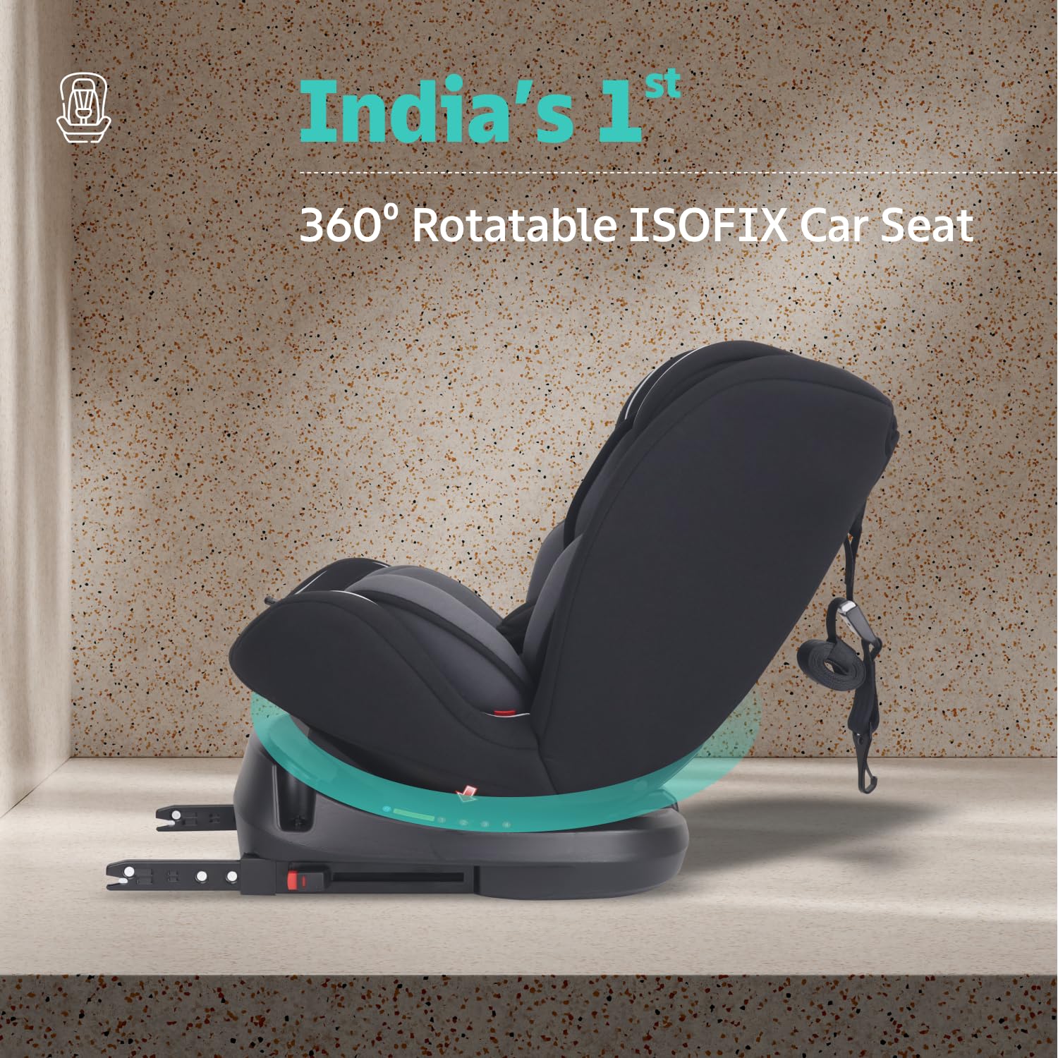 Jack N Jill ISOFIX Plus Car Seat for kids 0-12 Years Safety Certified, 360° Rotatable Seat, 5-Point Safety Harness, Adjustable Head Rest