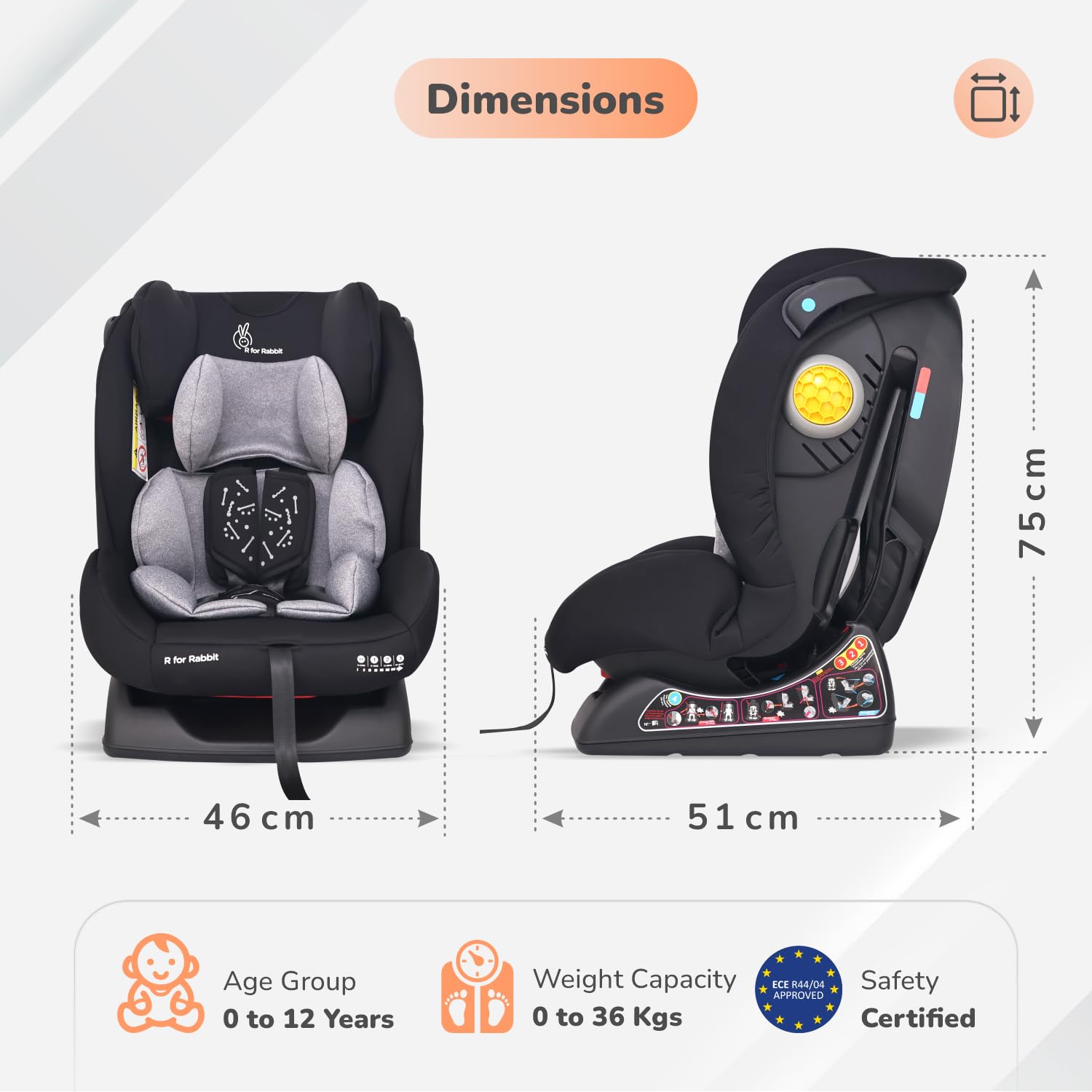 - Next Gen Safety: R for Rabbit’s Jack N Jill NXG Car Seat is ECE R44 safety certified, featuring a 5-point harness system that securely protects your child’s shoulders, hips and legs—ensuring peace of mind on every journey.