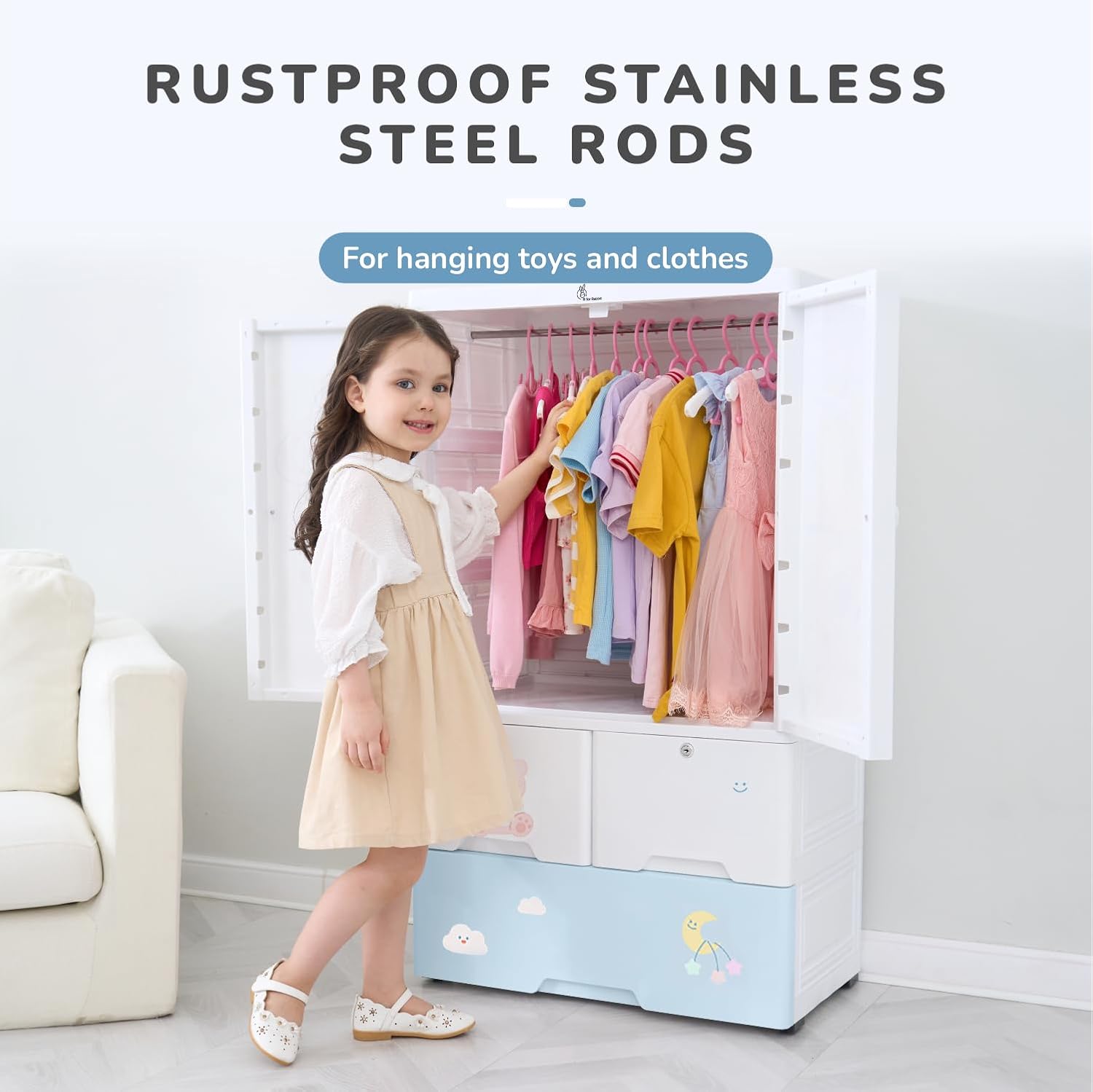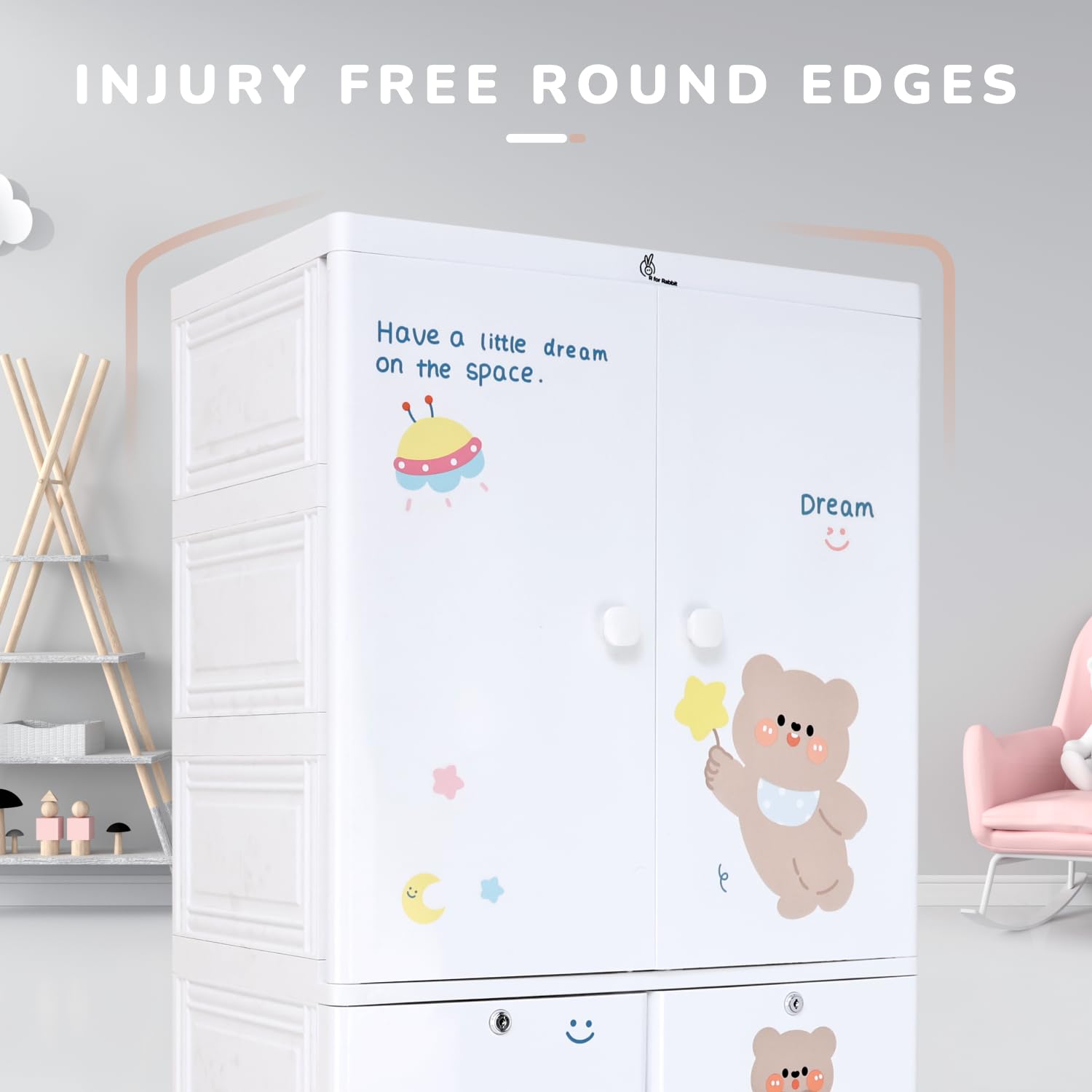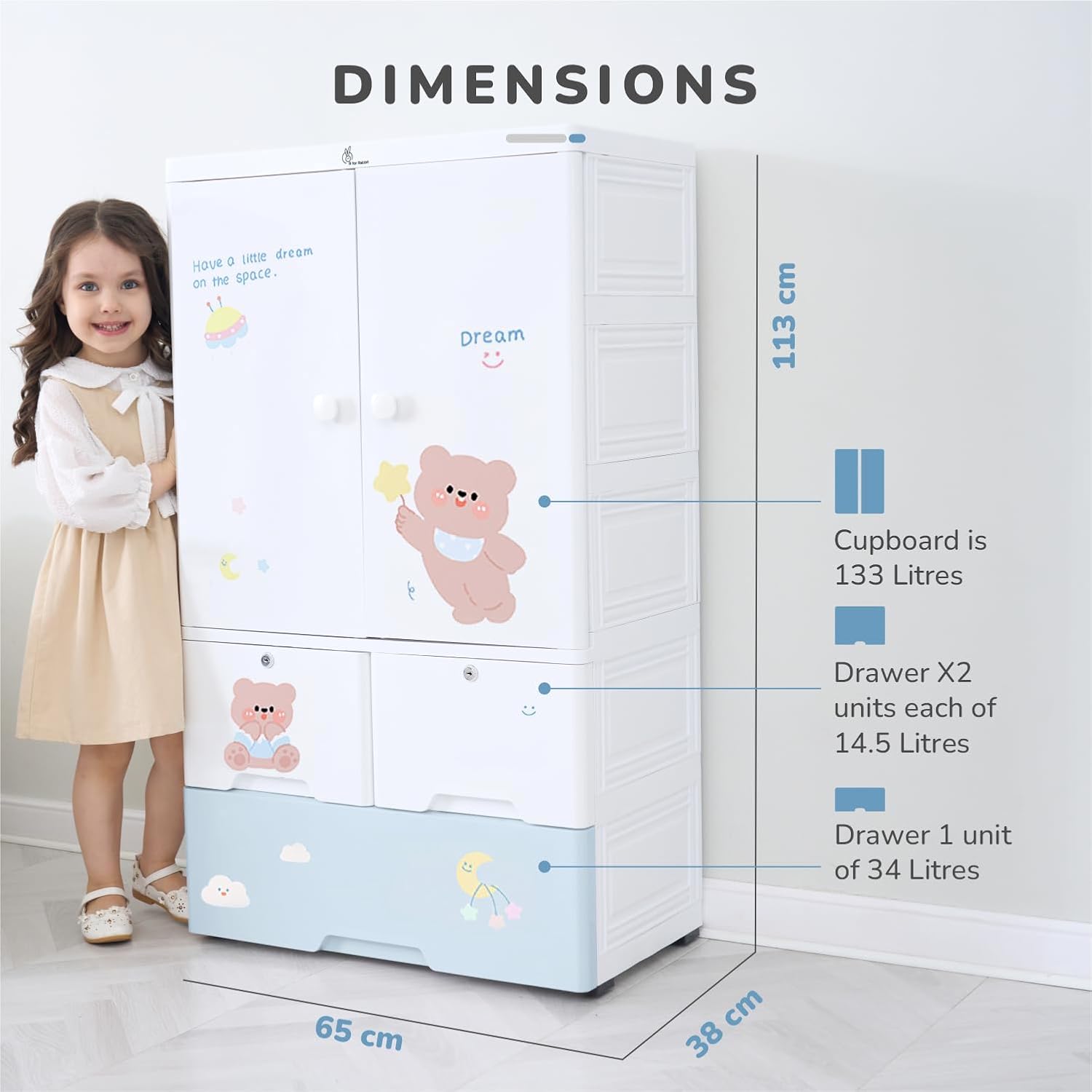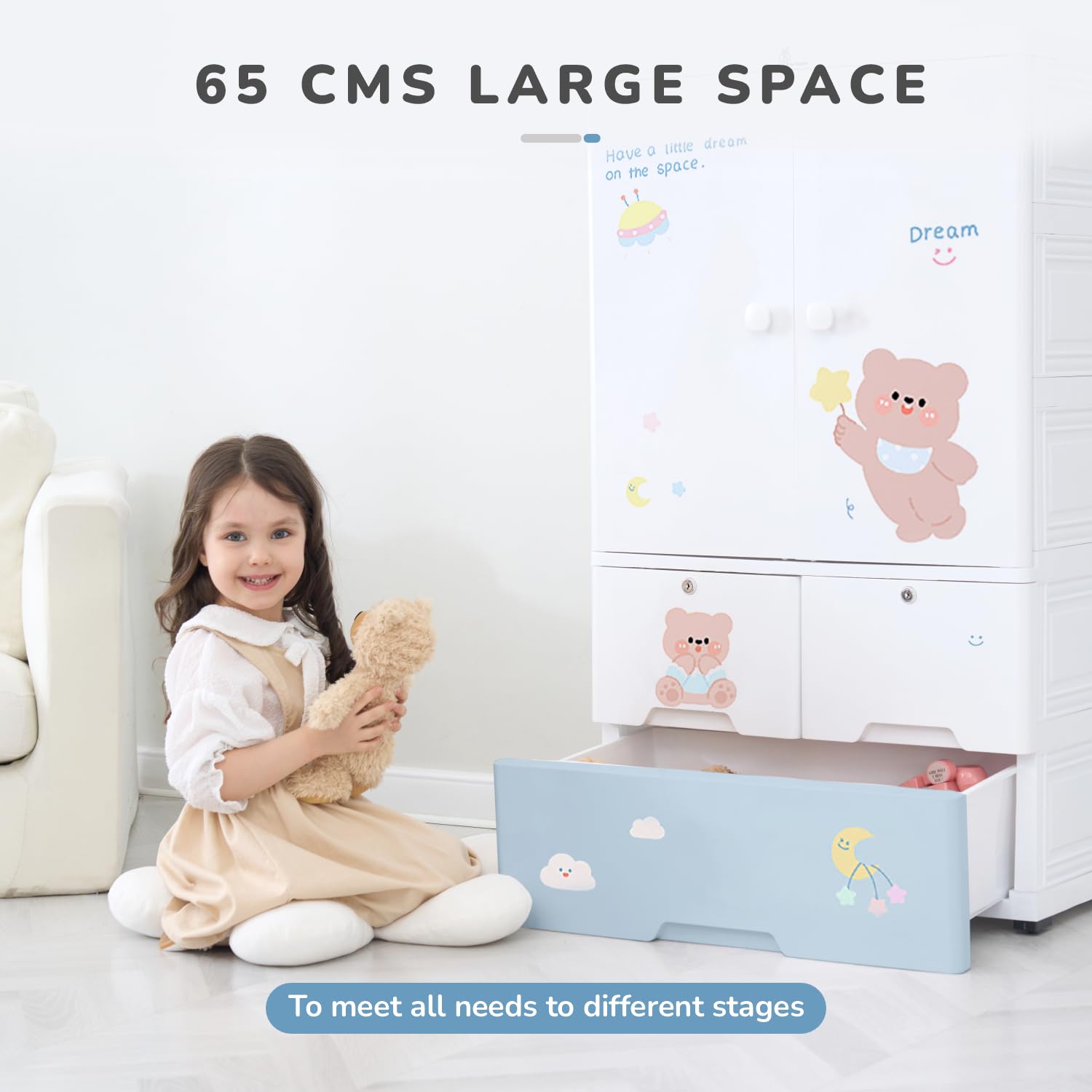 R for Rabbit Kiddo Korner Stellar Wardrobe for Kids Clothes Almirah Cupboard | Multipurpose Baby Toys/Books/Accessories Storage Organiser Closest with Anti-Skid Base & Lockable Drawers