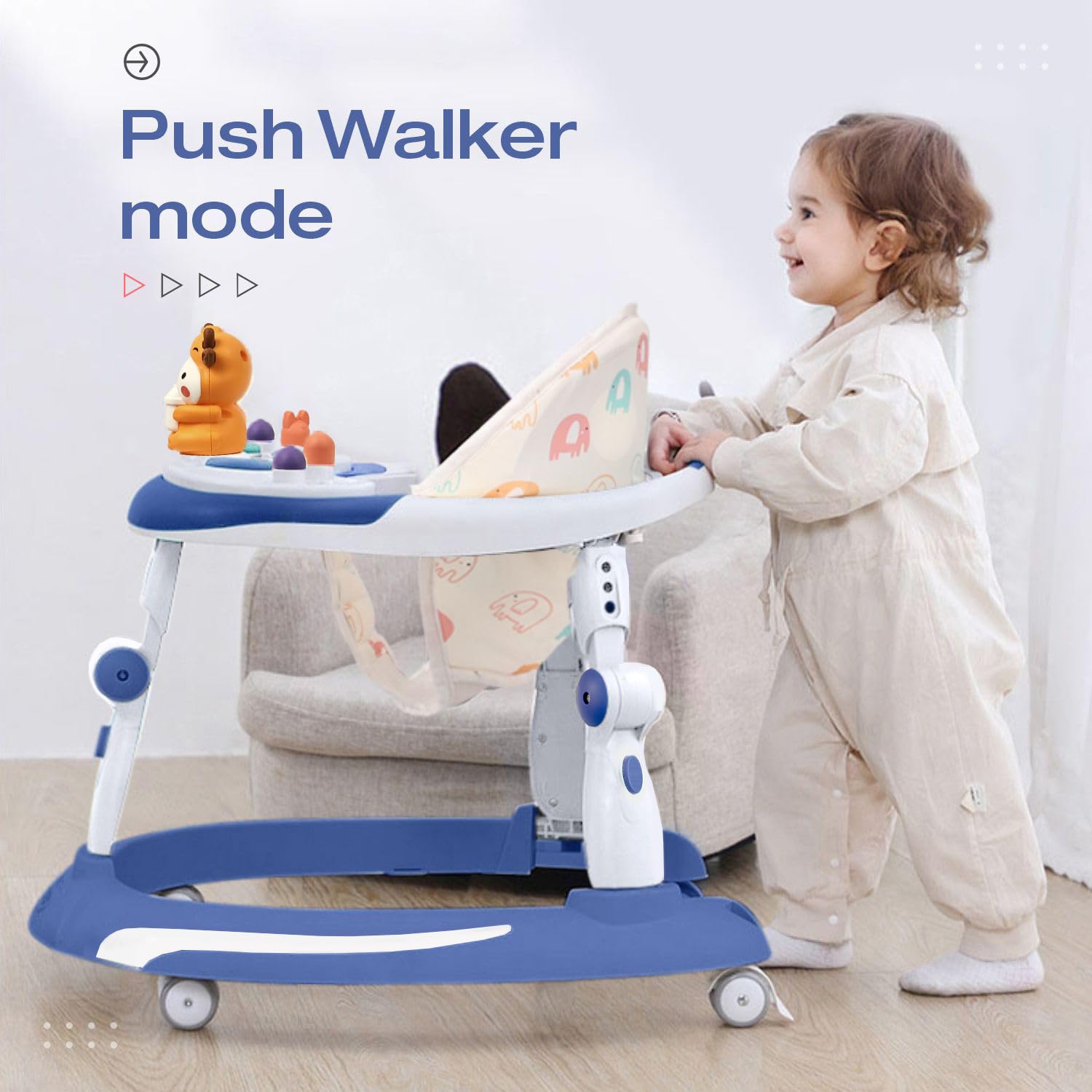 Mee Mee 2-in-1 Baby Walker & Rocker with Parental Push Handle, Anti Fall, Anti Skid Mechanism, 3 Level Height Adjustable with Light, Musical Toys, 360° Rotating Wheels 6-18 Months, Upto 15 Kg