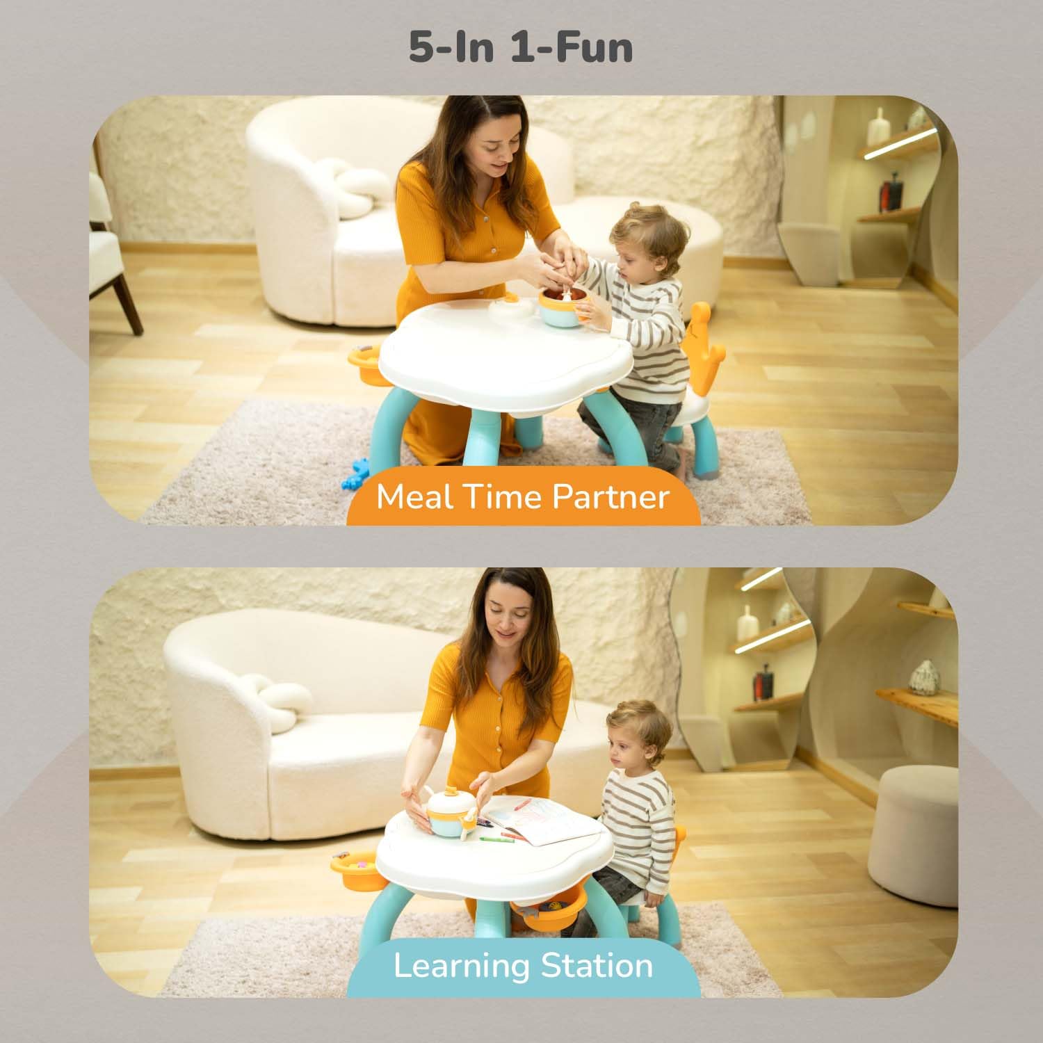 - 5-in-1 Multipurpose Fun: This versatile 5-in-1 marvel offers fun block game, water play, sand play, meal time partner and learning station ensuring that your child is engaged and entertained for hours.
