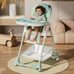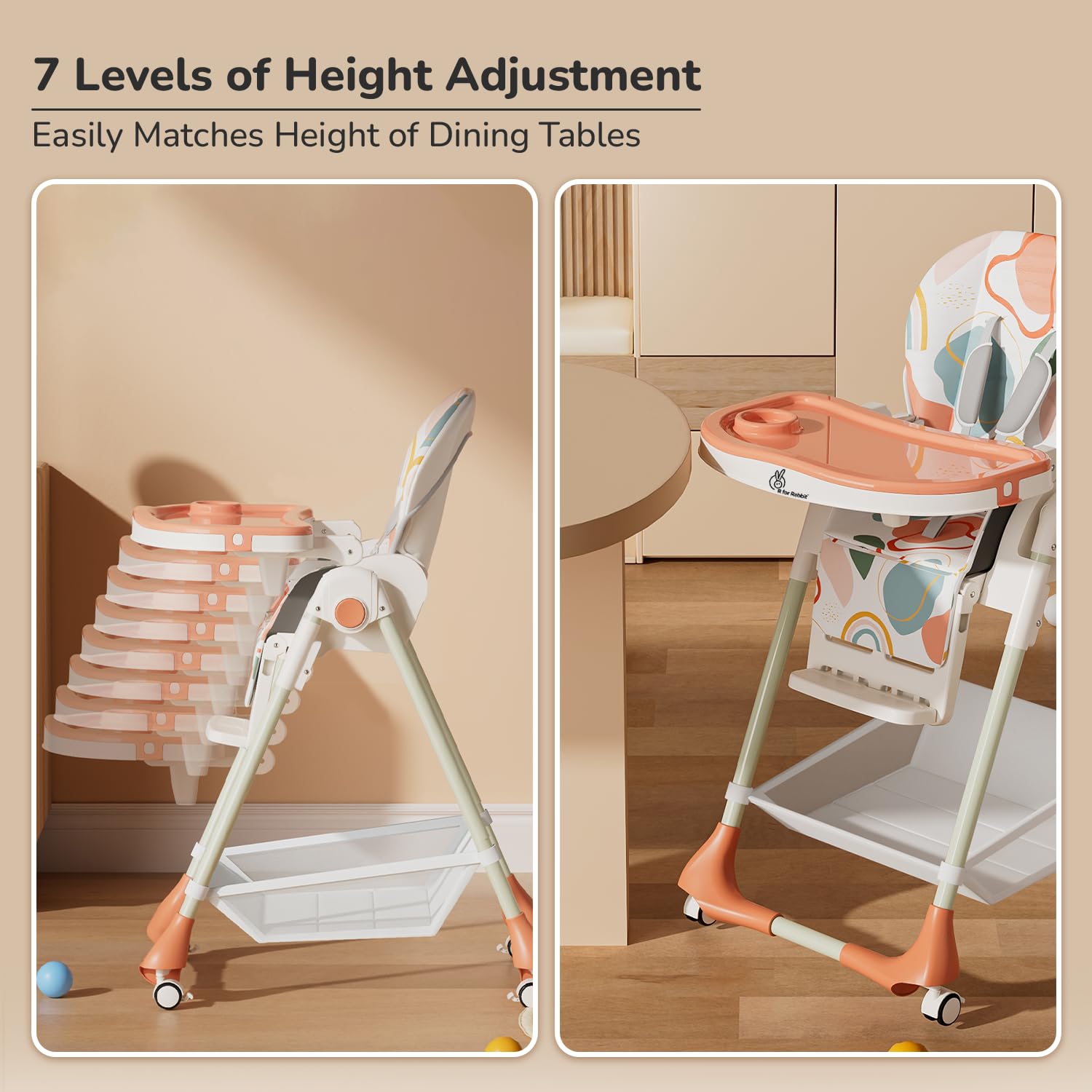 R for Rabbit Marshmallow High Chair – 7 Level Height Adjustment, 3 Recline Modes, Adjustable & Removable Double Meal Tray, 6 months-5 years