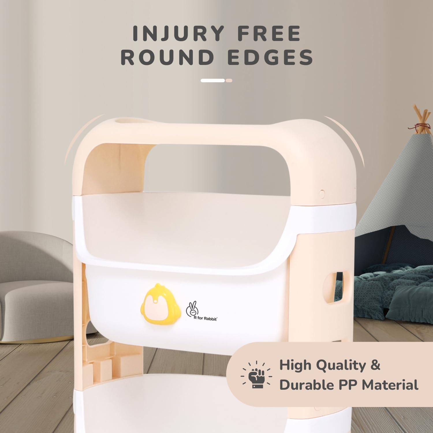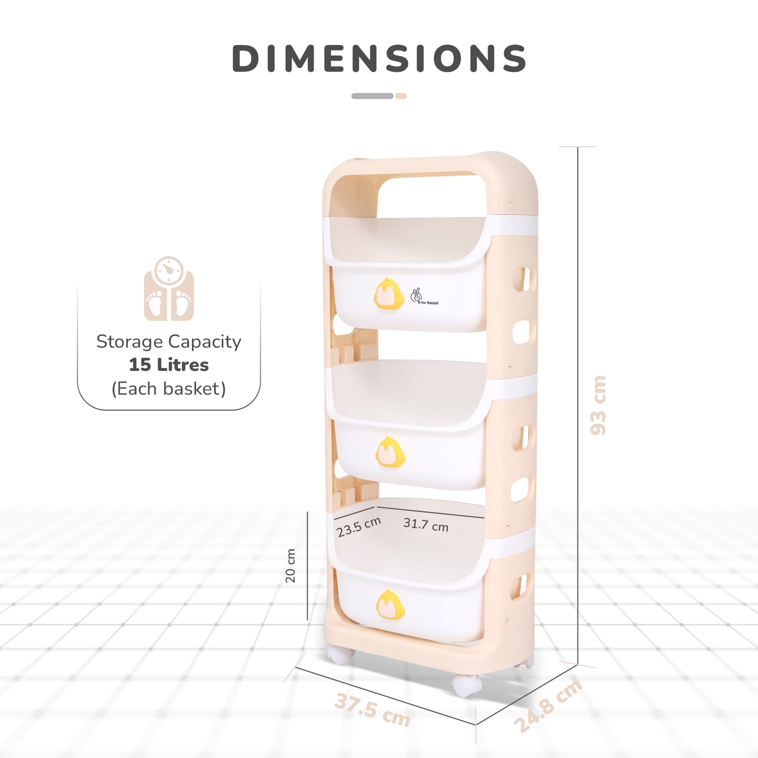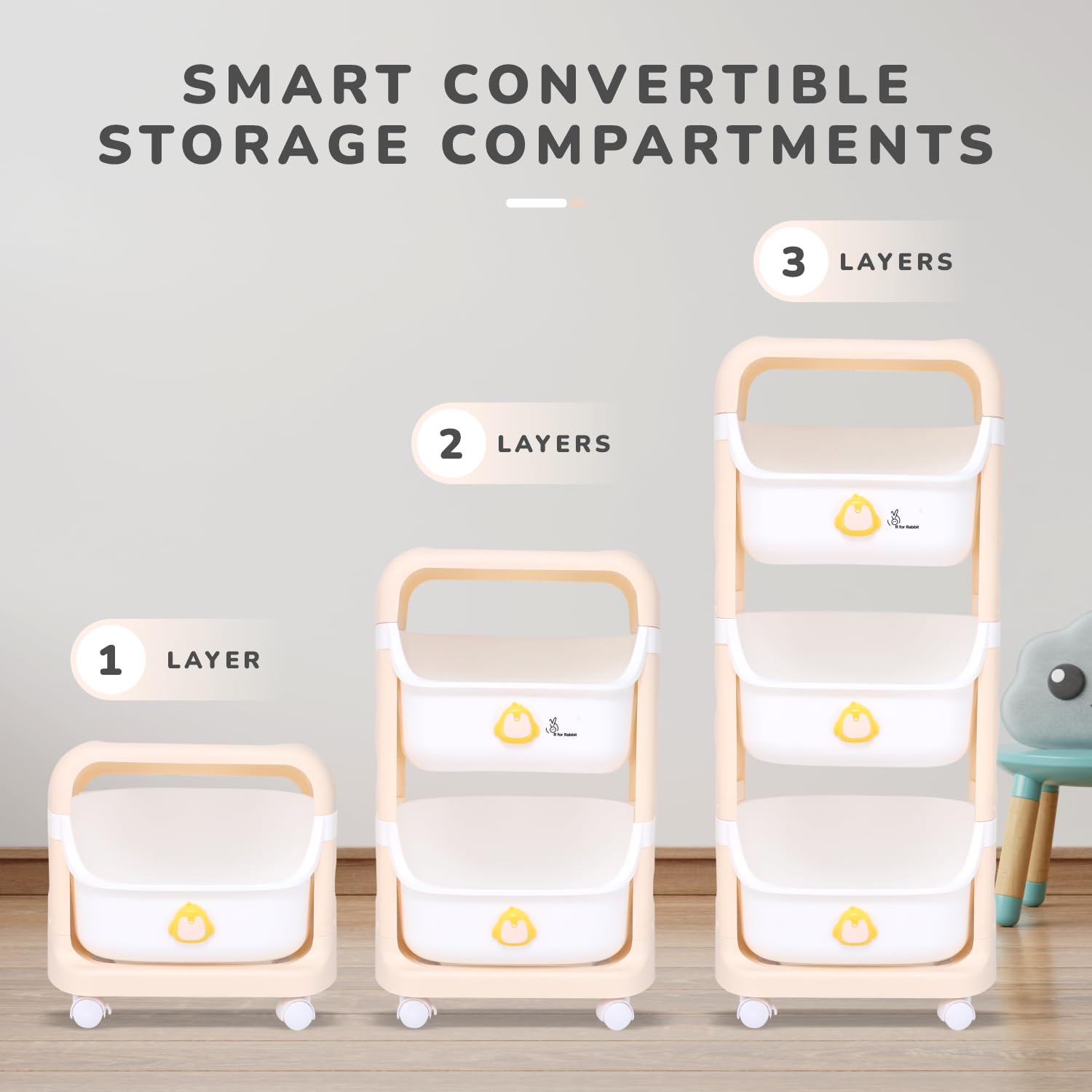R for Rabbit Little Genius Astro Organizer for Kids Toys/Books and Baby Clothes Wardrobe | Detachable 3 Level for Storage | Dust Proof Flip Cover & Centre-Locking Wheel Mechanism