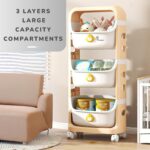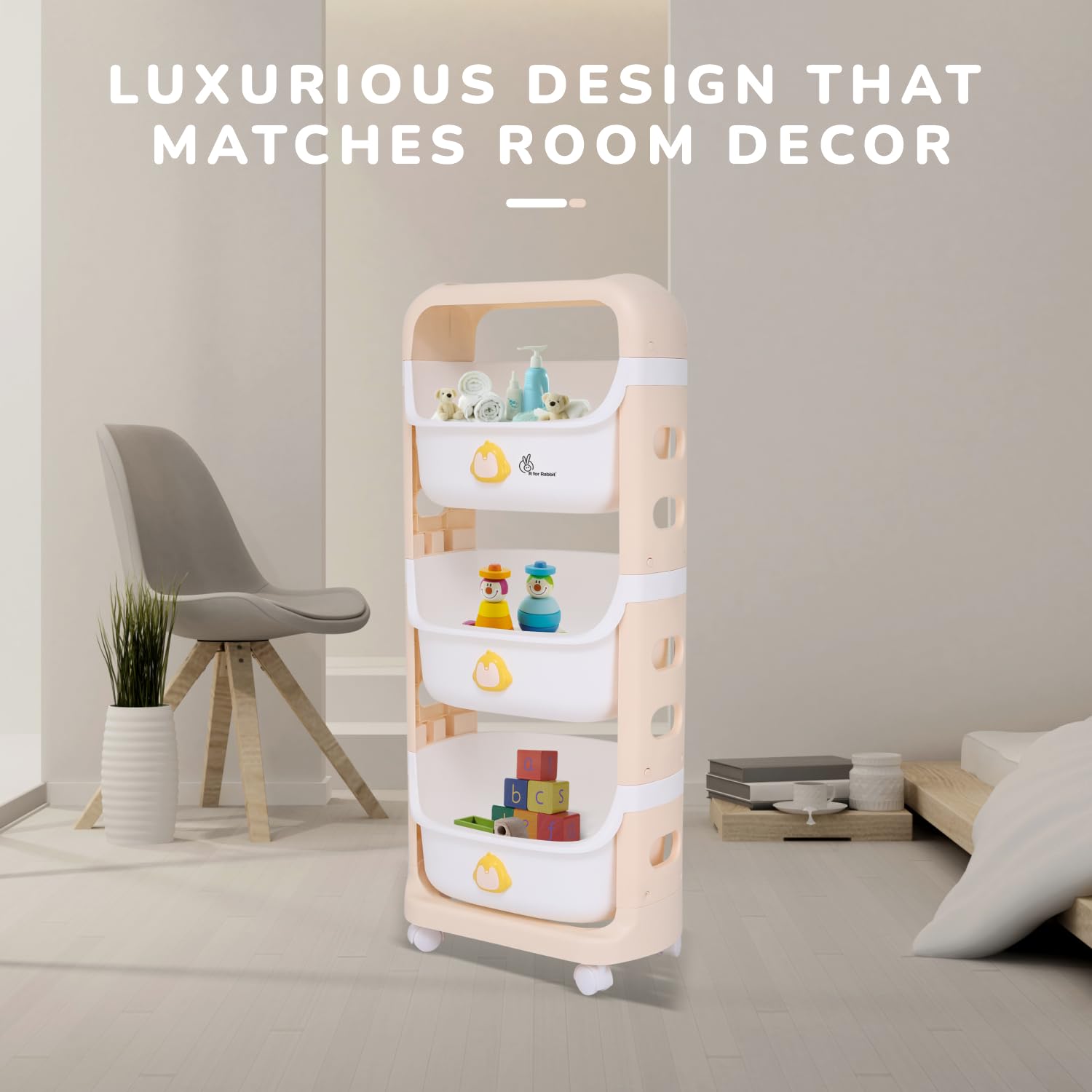R for Rabbit Polypropylene Kiddo Korner Frosty Organizer for Kids Toys/Books & Baby Clothes Wardrobe,Detachable 3 Level Storage Organiser,Easy Plug N Play Installation & Lockable Wheels