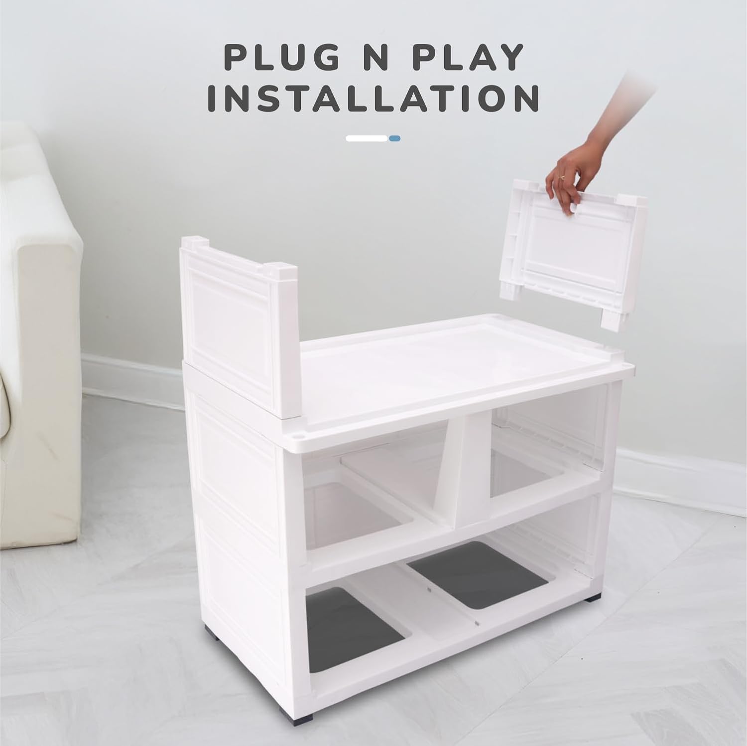 - Easy Plug-and-Play Setup: It is a no-tool plug N play installation by just sliding the parts together like a tower, and your kids’ wheelie storage is ready to roll!
