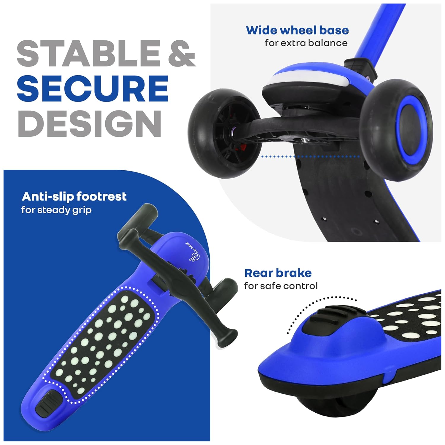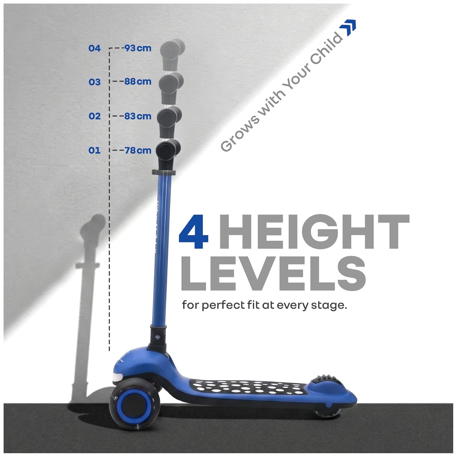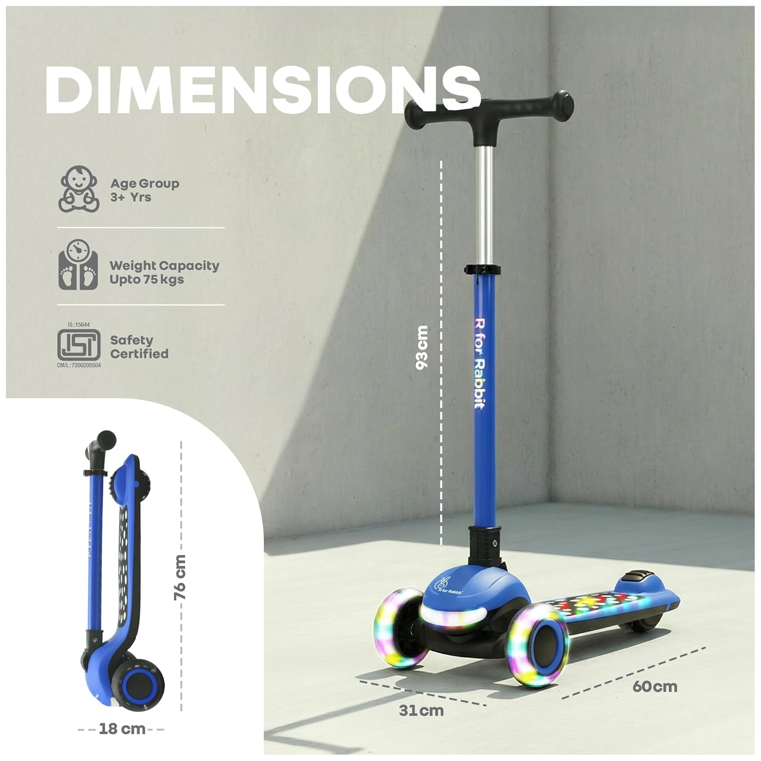 R for Rabbit Road Runner Blaze Foldable Kick Scooter for Kids with 4 Level Adjustable Height, PU LED Wheels, Lights and Music for 3+ Years Baby Boy & Girl of Upto 75kg Weight