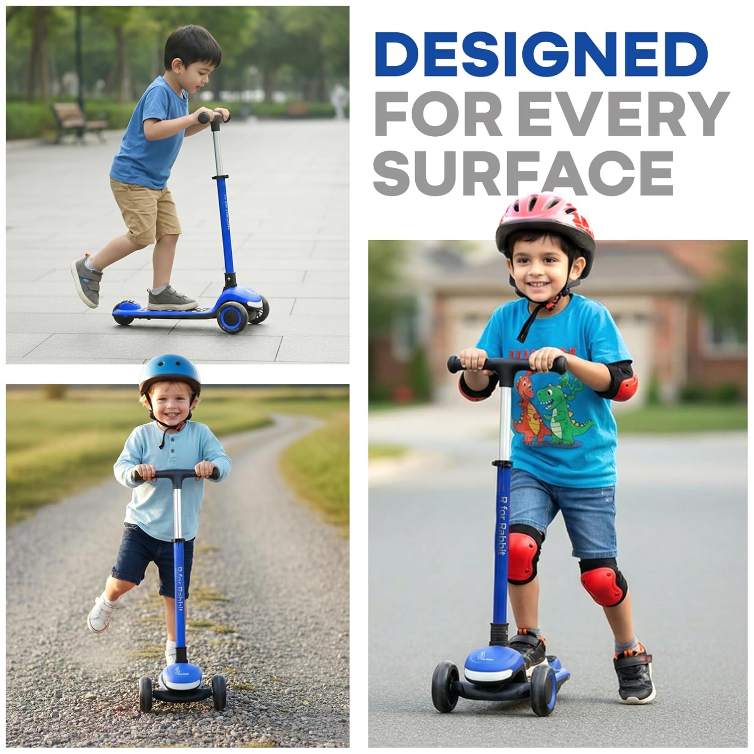 R for Rabbit Road Runner Ryder Kids Scooter, 3 Level Adjustable Height Wide Deck & PU LED Wheels Kick Scooter with Brake for 3+ Years Kids, Weight Capacity Upto 50kgs