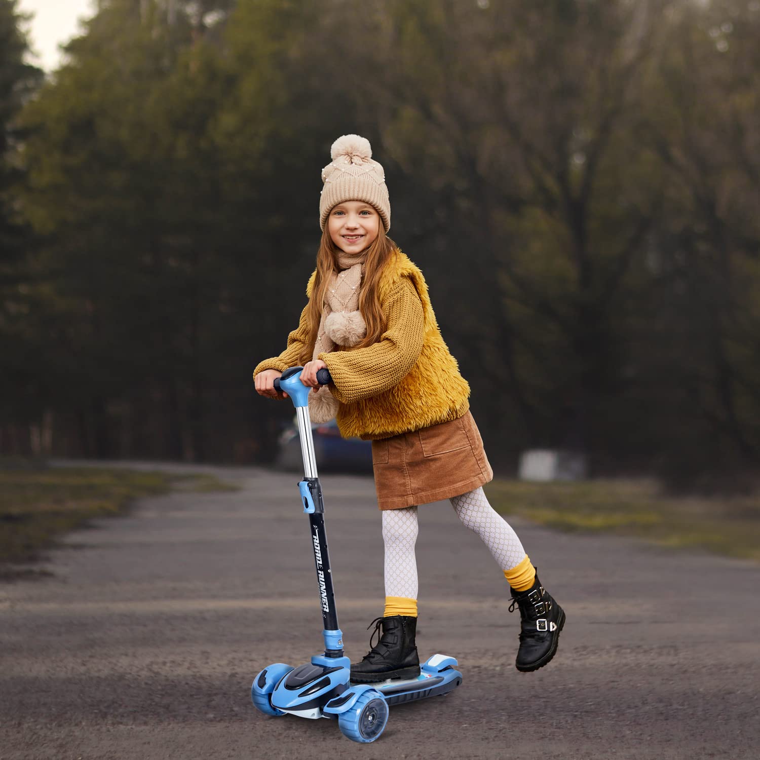R for Rabbit Road Runner Blaze Foldable Kick Scooter for Kids with 4 Level Adjustable Height, PU LED Wheels, Lights and Music for 3+ Years Baby Boy & Girl of Upto 75kg Weight