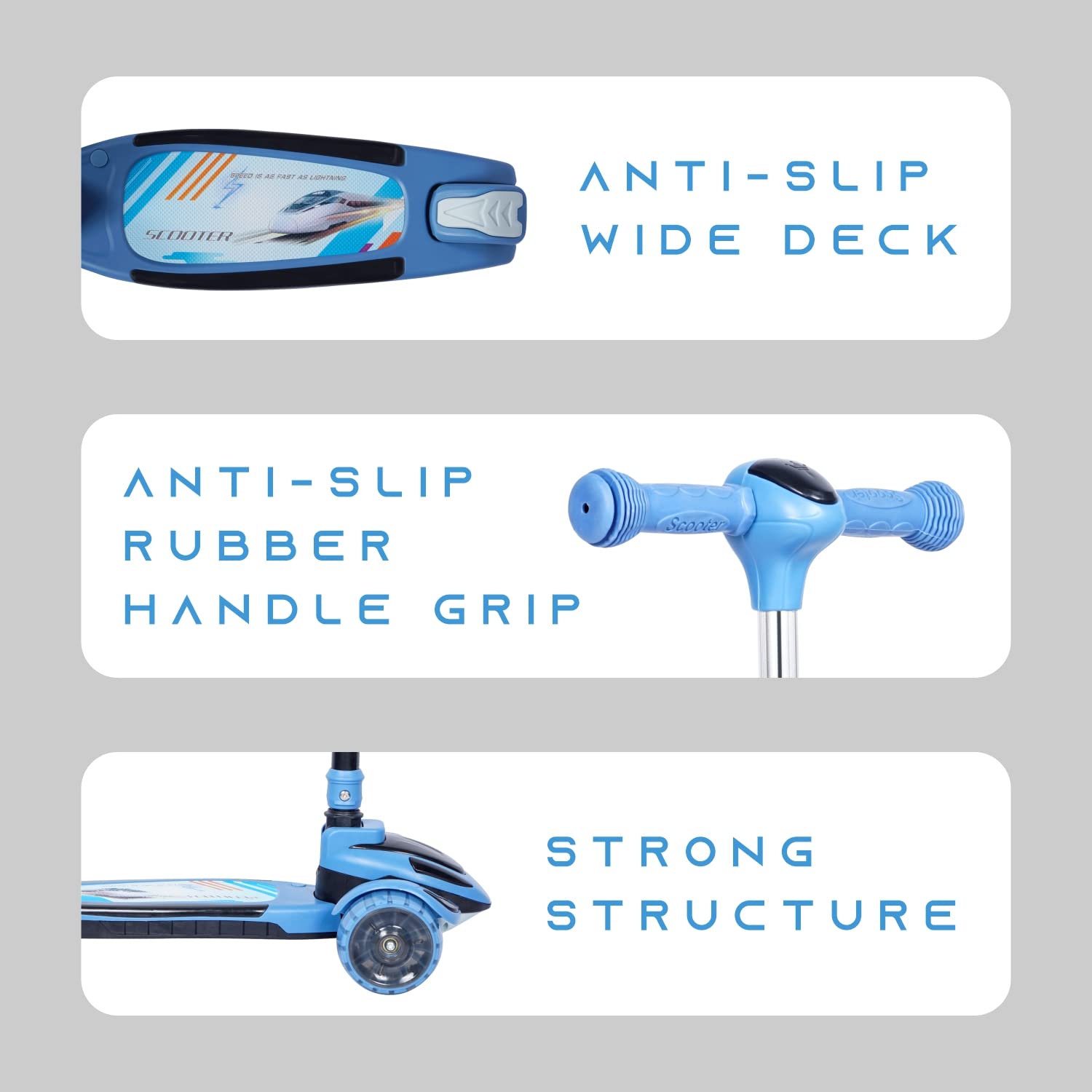 - PU LED Wheels: High quality PU wheels are used which leave no scratches on the surface making it convenient to use indoors. The LED lights up brighter when riding fast and makes riding more fun.