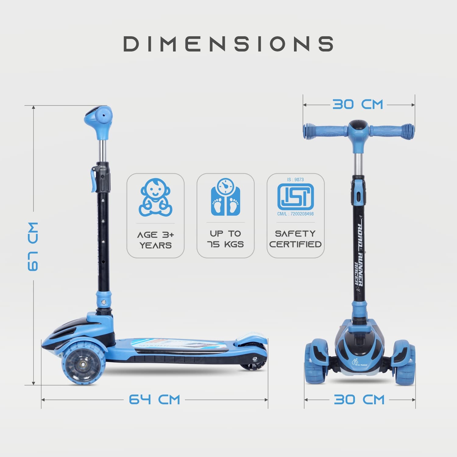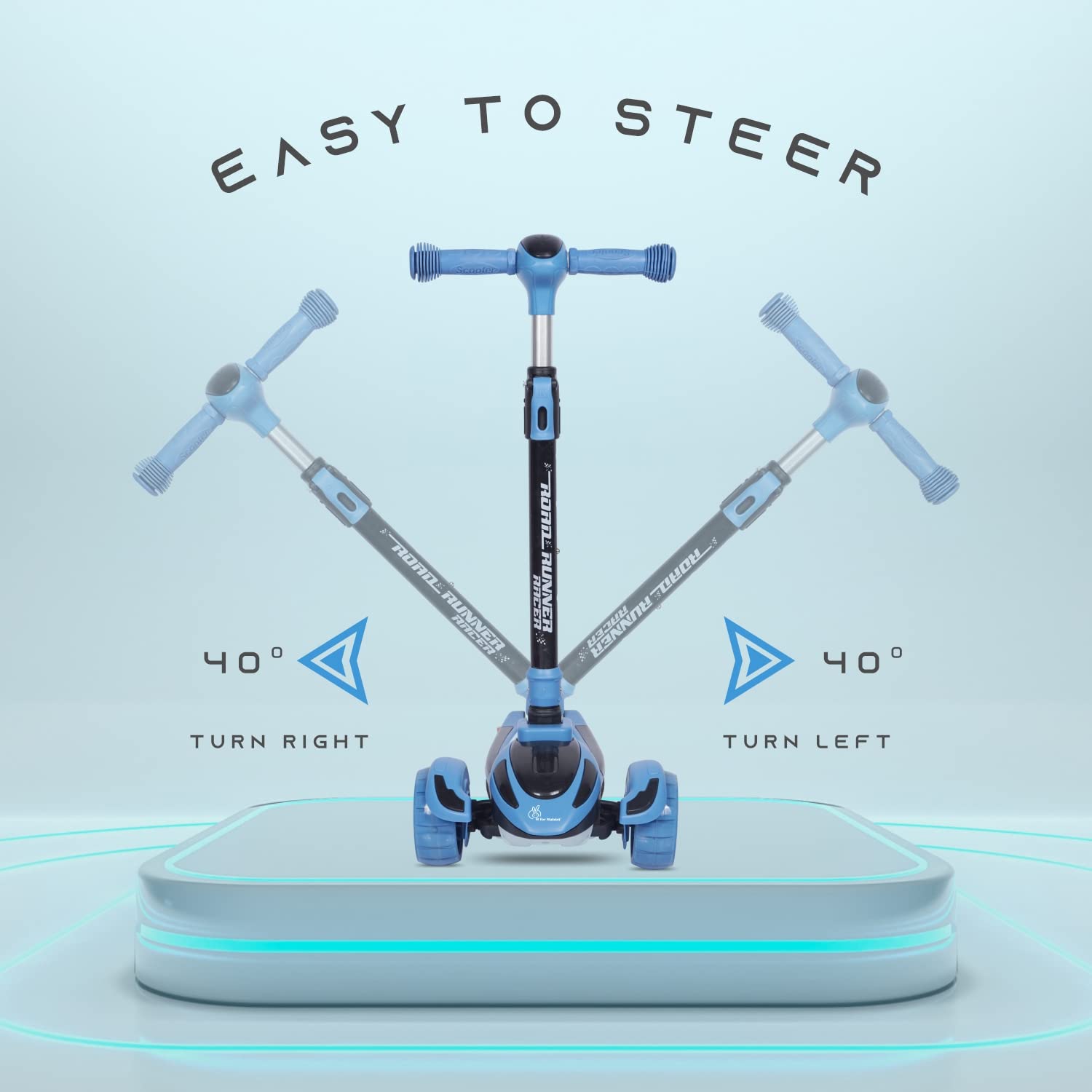 R for Rabbit Road Runner Racer Scooter for Kids of 3+ Years Age, 4 Level Height Adjustment Kids Scooter, PU LED Wheels & Weight Capacity Upto 75 kgs Kick Scooter
