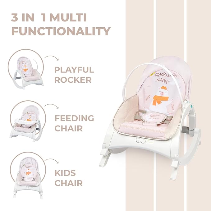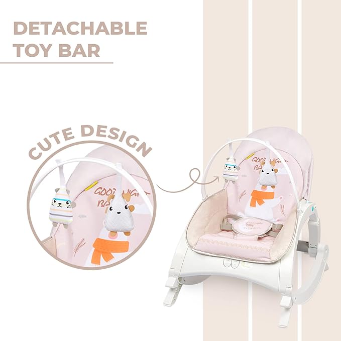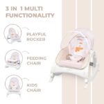 R for Rabbit Rock N Play Baby Rocker Baby Feeding Chair with Vibration and Soothing Music, Adjustable Backrest with Arc-Shaped Legs for Rocking Mode | 3 in 1 Functionality DetachableToy Bar