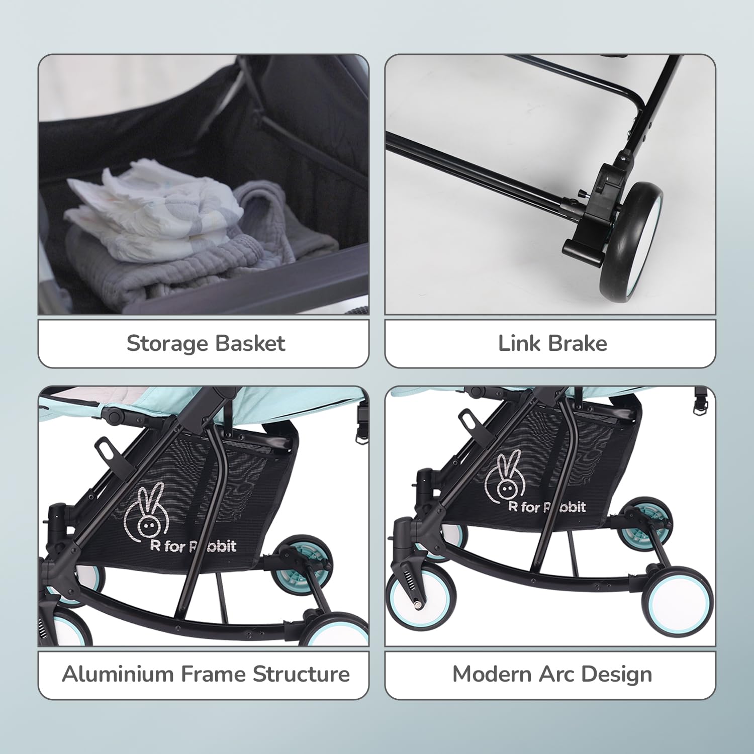 R for Rabbit Pocket Stroller Lite Stroller for Kids | Portable Travel Friendly Pre Installed Baby Trolley Pram for Newborn Boys & Girls of Age 0-3 Years