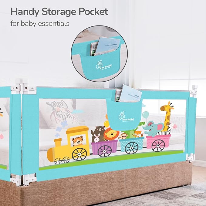 R for Rabbit Safari Baby Bed Rail, (Pack of 1) One Side Bed Protector 177 x 100 cm, Anti-Fall Safeguard Toddler Safety, Adjustable Height & Foldable with Storage Pocket for Kids 5.8 x 3 ft