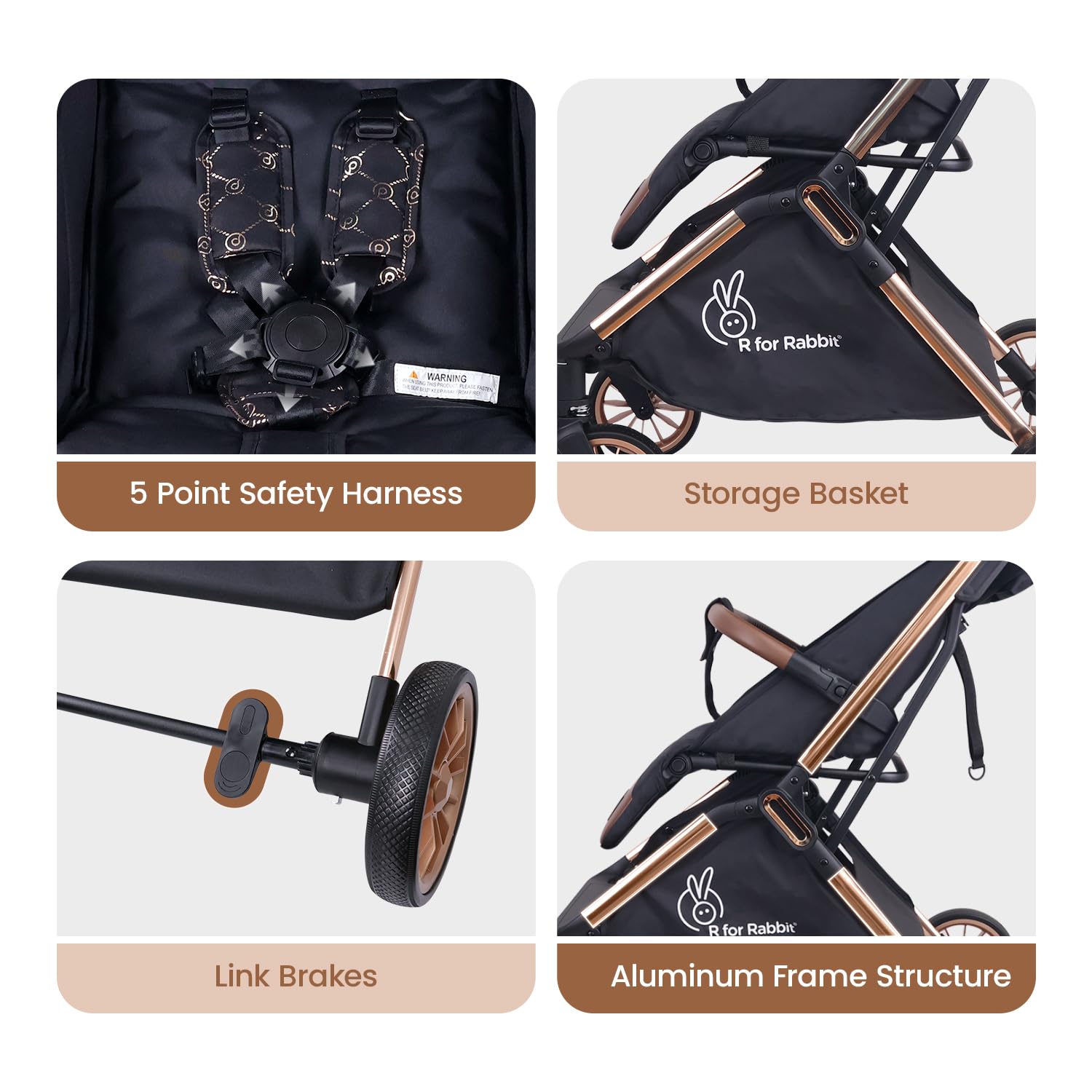 - Safety First : R for Rabbit Street Smart stroller is EN 1888 Certified for safety to make the outdoor time completely safe for your child and comes with a safety harness to top up the safety.