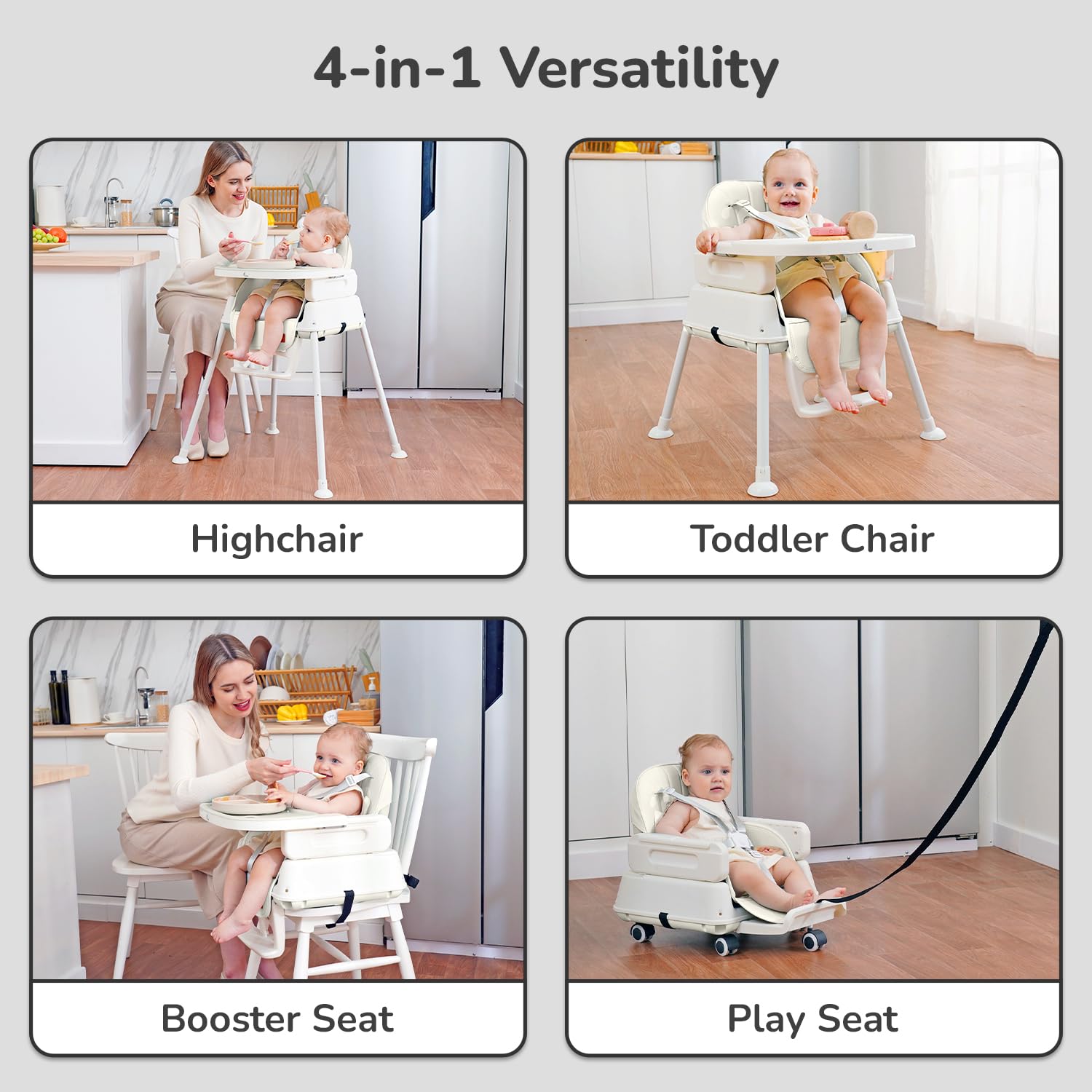 - 4-in-1 Convertible High Chair: Seamlessly transitions from a high chair to a play chair, kids chair and booster seat, ensuring lasting value and adaptability.