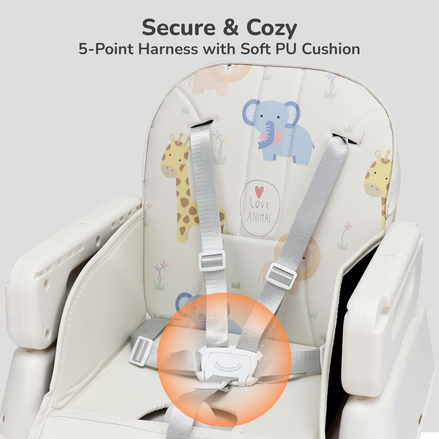 - Safety 1st: R for Rabbit Truffle High Chair is equipped with high-quality cushion and a secure 5-point safety harness provides ultimate safety for your little ones.