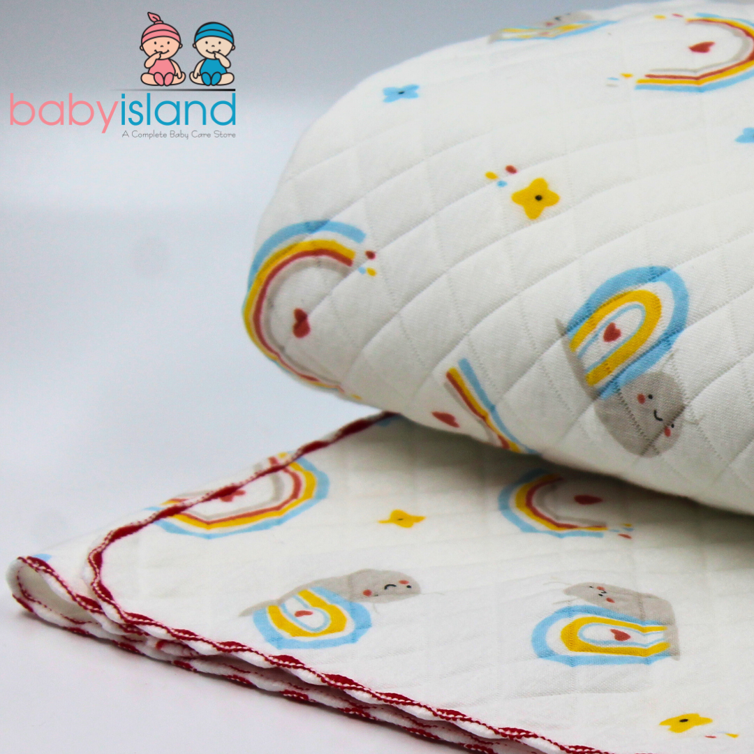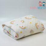 Wrap your little one in comfort with our adorable baby blanket! Featuring a charming rainbow and cloud print on soft, quilted muslin fabric, this blanket is perfect for snuggles, playtime, and on-the-go adventures. Gentle on delicate skin and machine washable for easy care.