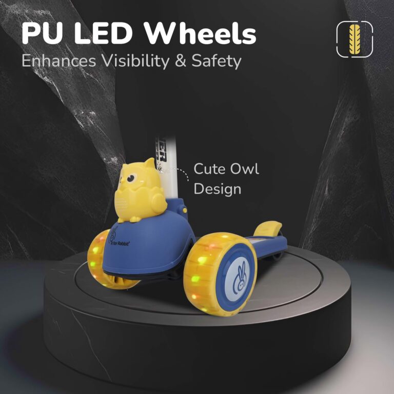 R for Rabbit Road Runner Bunny Kids Scooter, 3 Level Adjustable Height, Smart Fold & PU LED Wheels Kick Scooter with Brake for 3+ Years Kids, Weight Capacity Upto 75kgs